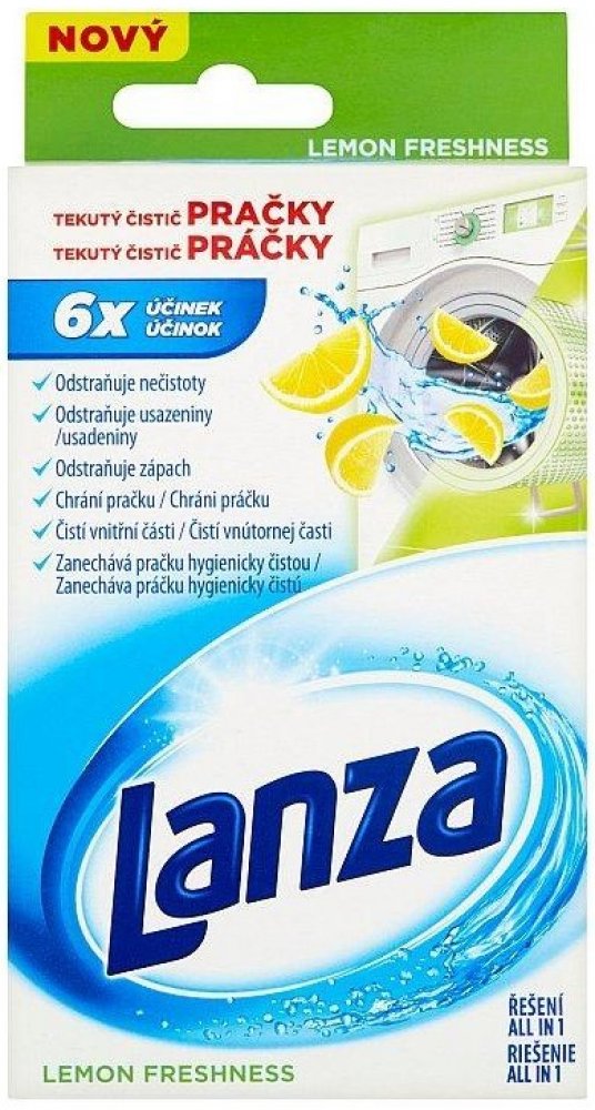 Lanza čistič pračky, 250 ml, je navržen pro pravidelnou péči o vnitřní části vaší pračky. Produkt čistí a odstraňuje nečistoty a zbytky pracího prostředku ze všech povrchů uvnitř pračky, pomáhá udržet vnitřní části v čistotě a přispívá k optimálnímu provozu spotřebiče, přičemž zanechává příjemnou vůni.