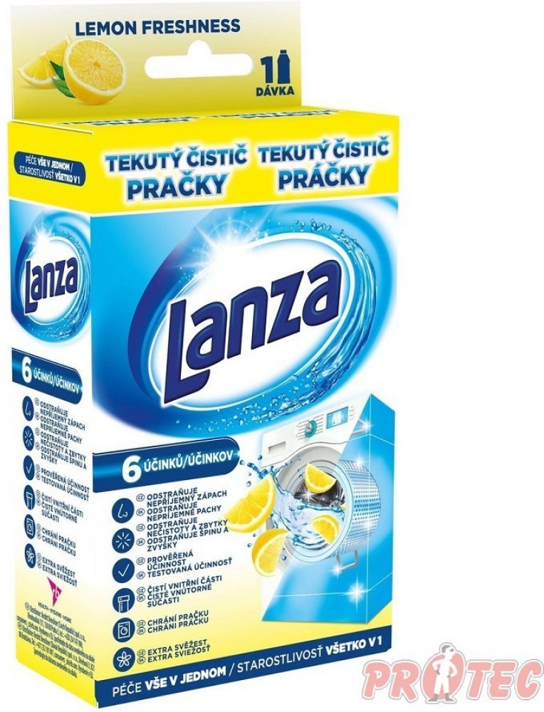Tekutý čistič pračky Lanza má trojí účinek: Čistí a odstraňuje nečistoty a zbytky pracího prostředku ze všech povrchů uvnitř pračky. Udržuje vnitřní části pračky čisté pro zaj...