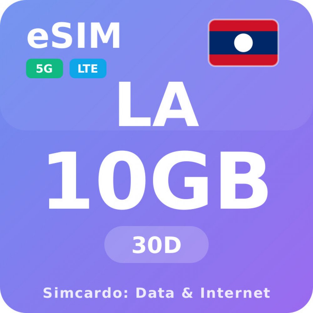 Mobilní datový plán pro Laos s 10GB platný na 30 dní.