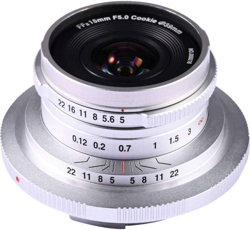 Laowa 15 mm f/5 Cookie FF je širokoúhlý objektiv typu „pancake“, který se vyznačuje extrémně malými rozměry (Ø 67 mm, výška 42 mm) a nízkou hmotností pouhých 160 g. Díky svému skladnému provedení je ideální pro každodenní použití při street fotografii nebo fotografování krajiny.