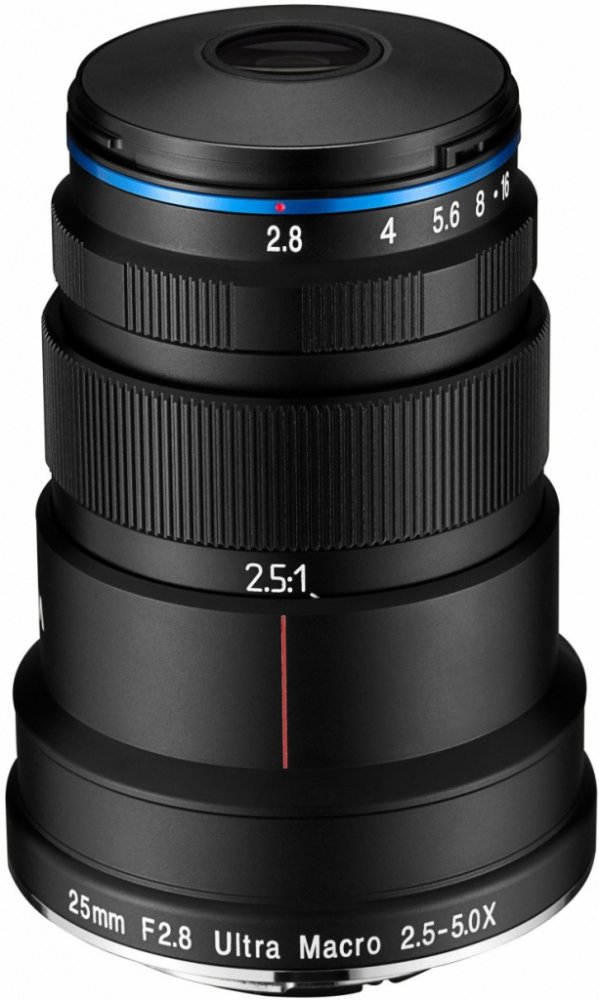 V případě objektivu 25 mm f/2.8 2.5-5X Ultra-Macro se jedná o další exkluzivní kousek od firmy Laowa pro pořizováních extrémních makro fotografií. Objektiv nabízí zvětšení v rozsahu 2.5-5x. Byl speciálně navržen tak, aby poskytoval větší pracovní vzdálenost, což má za důsledek dostatečné osvětlení fotografovaného subjektu přírodním světlem. Extrémní makro fotografie tak s tímto objektivem není již žádným složitým úkolem. Širší ohnisková vzdálenost objektivu poskytuje mnohem větší hloubku ostrosti v porovnání s jinými extrémními makro objektivy dostupnými na trhu. Speciální konstrukce s ohniskem 25 mm poskytuje úhel záběru 10,3°, což odpovídá běžně ohnisku 240mm. Objektiv má pohodlnou pracovní vzdálenost 40 mm při makro zvětšení 5:1 a 45 mm při makro zvětšení 2.5:1. Kombinace širšího úhlu a velkého makro zvětšení poskytuje větší hloubku ostrosti v porovnání s tele nebo dlouhými objektivy. Optická stavba objektivu obsahuje 8 prvků v 6 skupinách, včetně elementů s velmi nízkou disperzí k dosažení dokonalé ostrosti v celém rozsahu a minimální chromatické aberace. V porovnání s jinými je tento objektiv navíc mnohem kompaktnější a lehčí. Je ideální volbou jak pro profesionály tak nadšené amatéry se zálibou v extrémní makro fotografii.