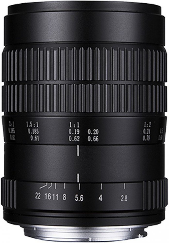 Manuální makro objektiv je vhodný pro FullFrame fotoaparáty i APS-C (s ekvivalentem 96mm) se světelností f/2.8 až f/22, zvětšení 2x až 0,1x, 14 lamelová clona, opticky složený z 9 optických členů v 7 skupinách. Nepřenáší žádné elektronické informace o nastavení do fotoaparátu.