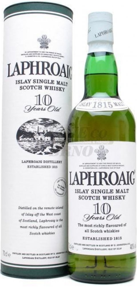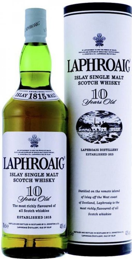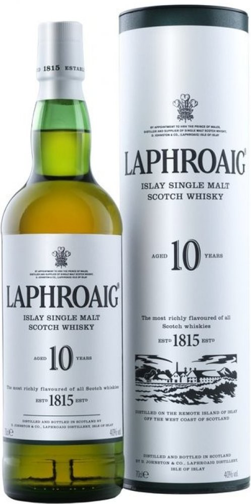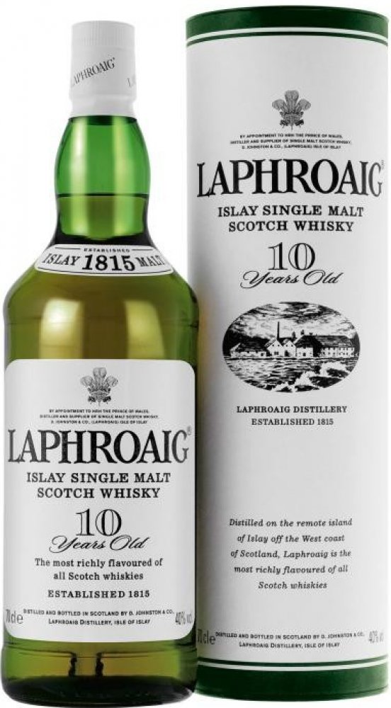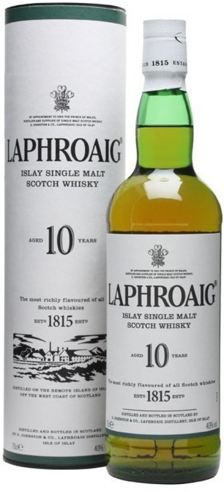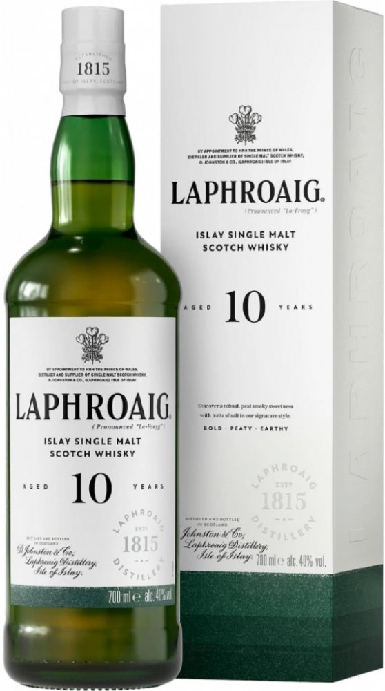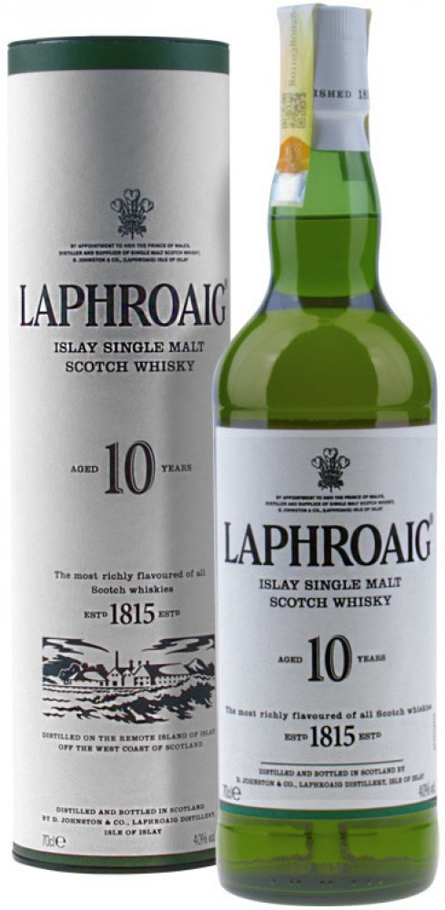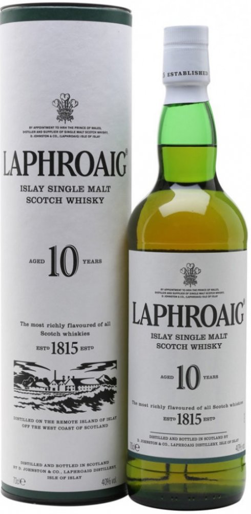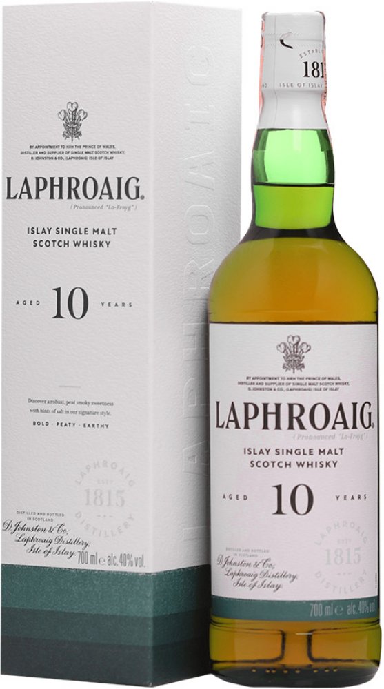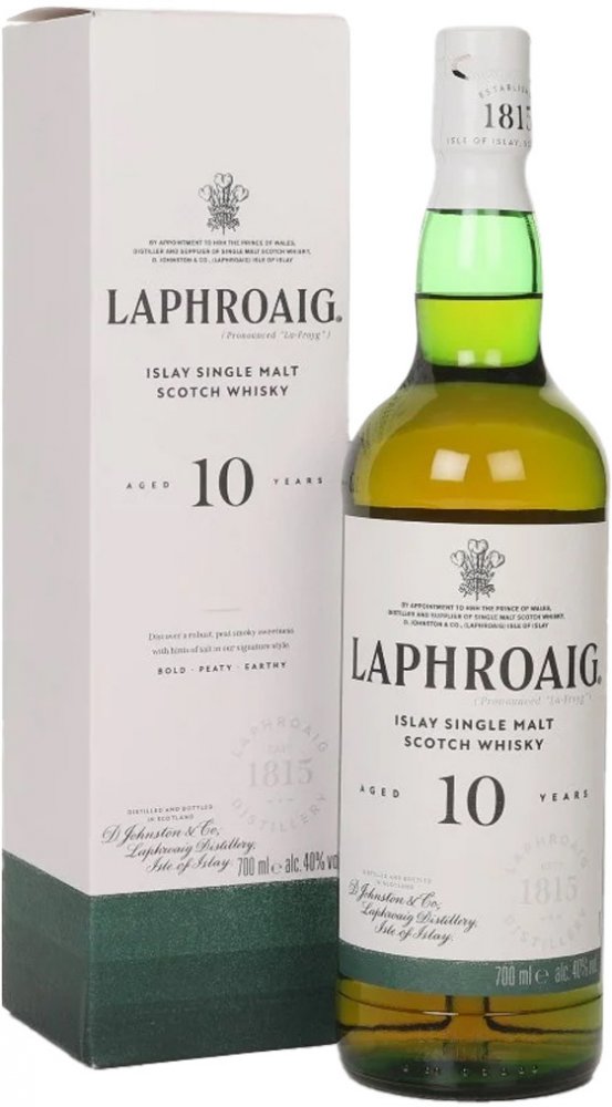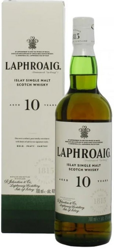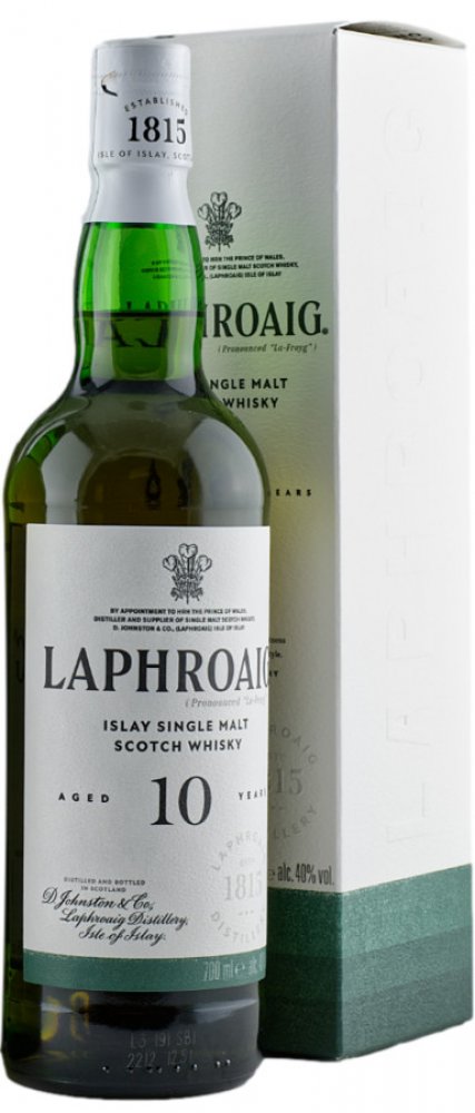 Laphroaig je 10tiletá whisky, která patří mezi nejosobitější skotské alkoholické nápoje. Whisky s typicky výraznou, kouřovou chutí slané rašeliny a nádechem mořských řas. Závěr je příjemně sladký. Při výrobě whisky Laphroaig se ječmenný slad suší nad hořící rašelinou. Kouř z této rašeliny dodává této whisky její výjimečnou bohatou chuť.