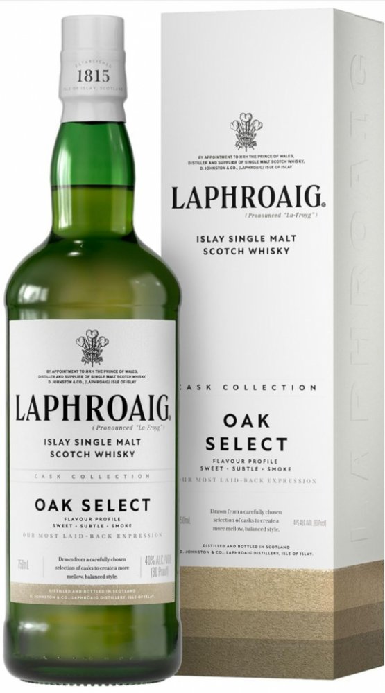 Laphroaig Select je pojmenován podle unikátního výběru (anglicky „selection“) amerických a evropských sudů, ve kterých tato whisky postupně zraje. Laphroaig Select se staří v sudech po Sherry Oloroso, v nových nepoužitých sudech z amerického bílého dubu, v sudech po sherry Pedro Ximenez, v tzv. Quarter Casks (sudy malých rozměrů, které dodávají výraznější dubové aroma) a nakonec v sudech po bourbonu. Tento postup dodává whisce Laphroaig Select bohatou mnohovrstevnatou chuť. Nejprve ucítíte rašelinové tóny následované chutí zralého ovoce ze sudů Pedro Ximenez a Sherry Oloroso. Poté přijde suchý dotek amerického dubu s pomalu doznívajícím květinovým závěrem.
