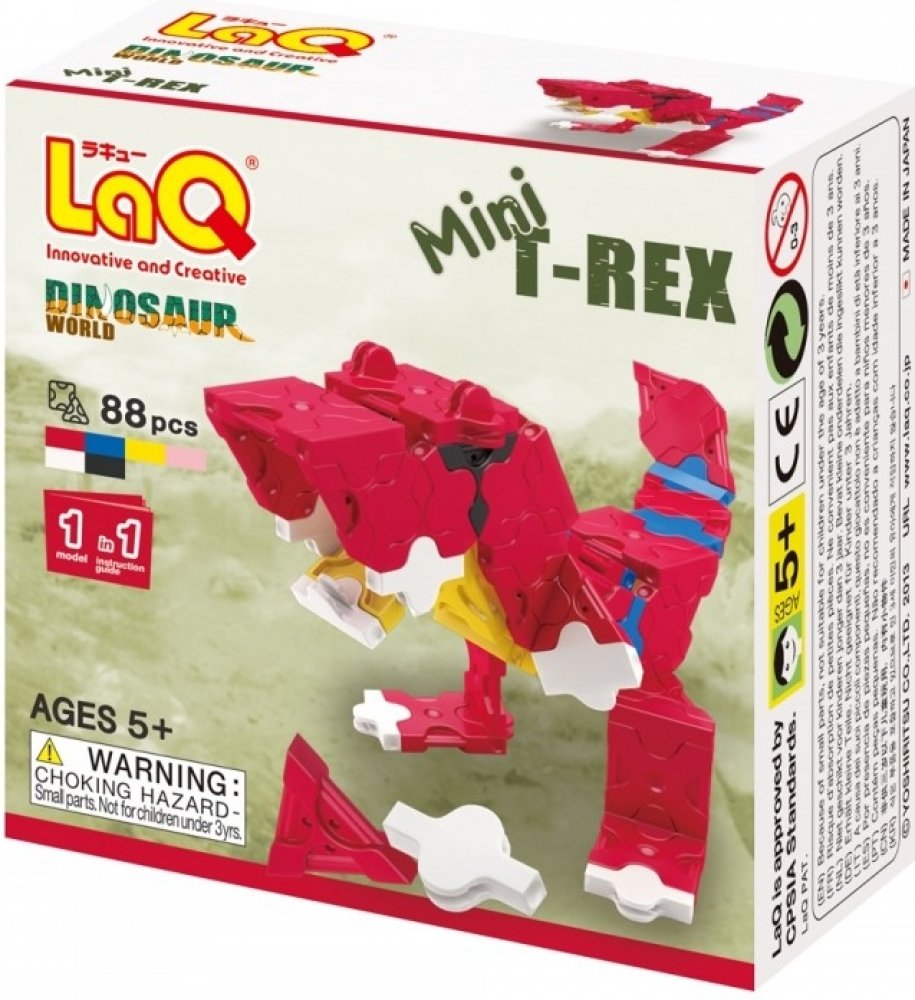 Mini stavebnica na poskladanie modelu jedného z najobávanejších mäsožravých dinosaurov T-REXA či už len tak pre tvorivú zábavu, alebo do kolekcie mini modelov LaQ na poličku. Malý darček s veľkou tvorivou hodnotou. Určené pre vekovú kategóriu 5+. Balenie obsahuje 88 dielikov a návod.