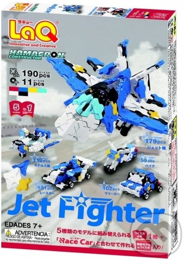 Špeciálny set pre chlapcov. Poskladaj si z LaQ stavebnice super pohyblivé modely so špeciálnymi Hamacron dielikmi a vytvor si svoj tím stíhačiek a pretekárskych vozidiel.