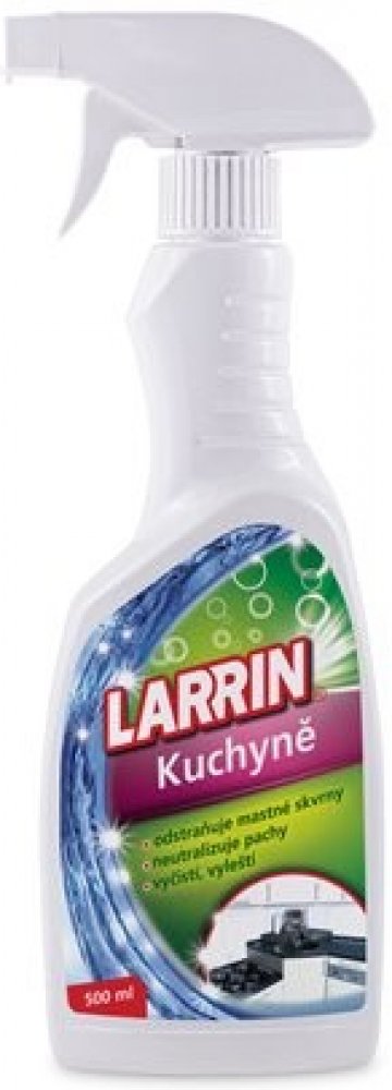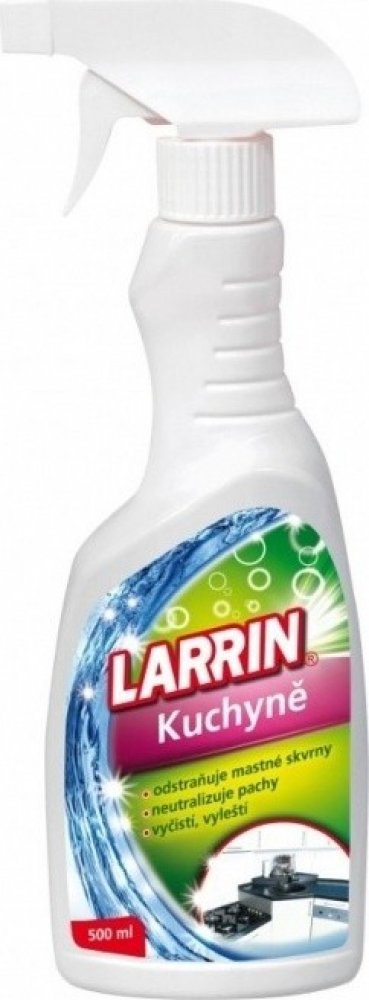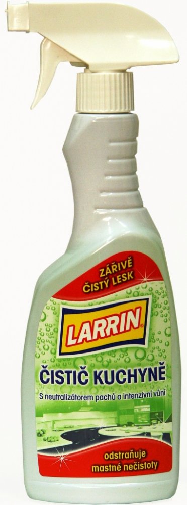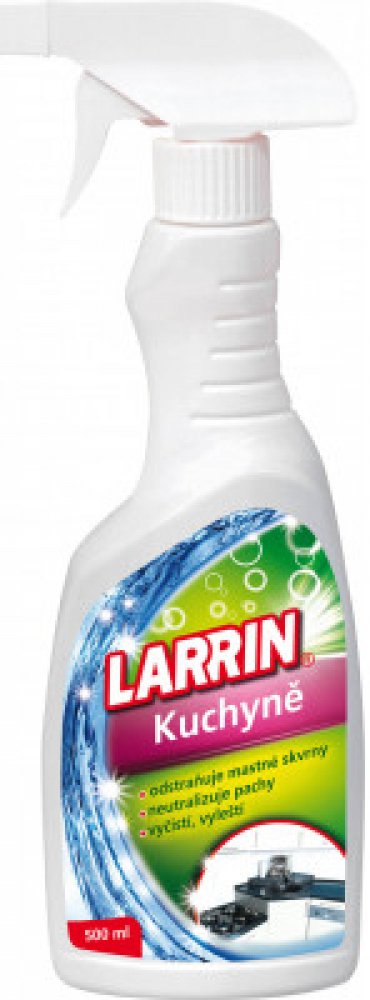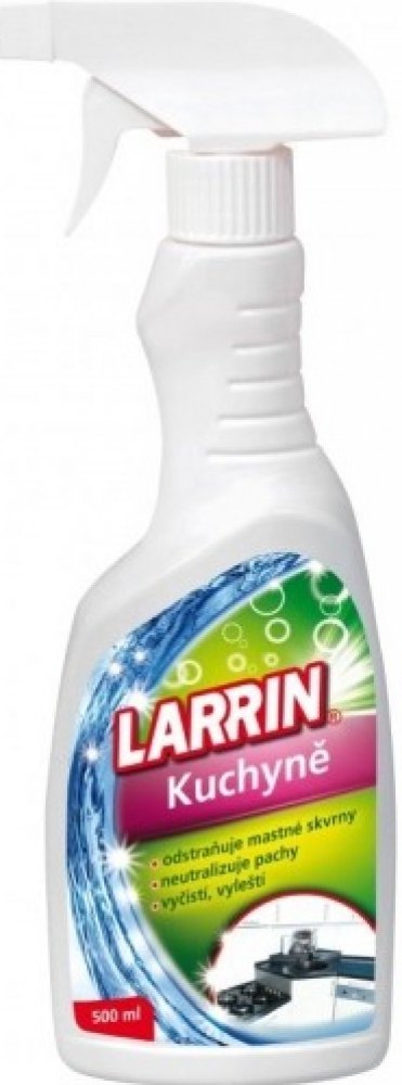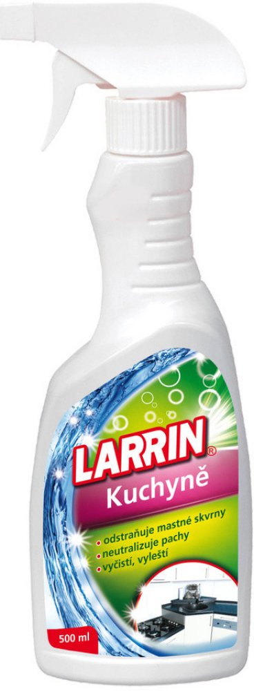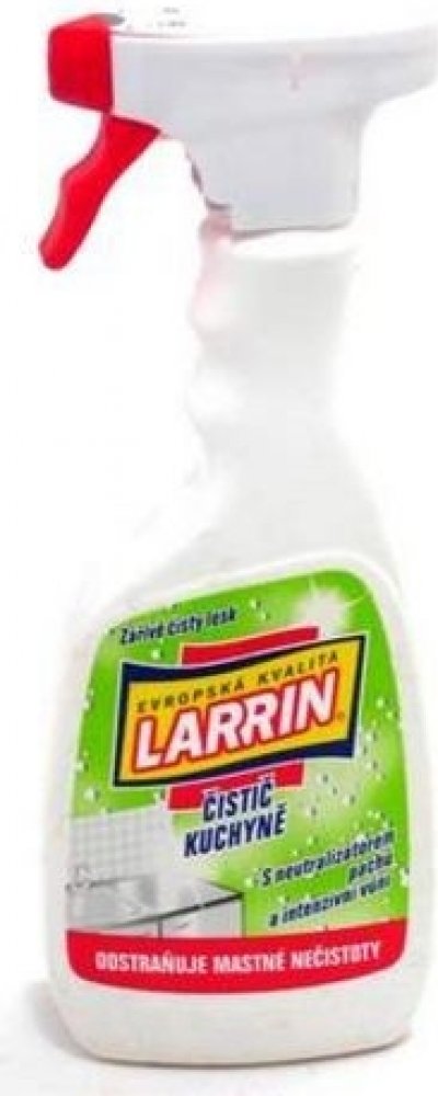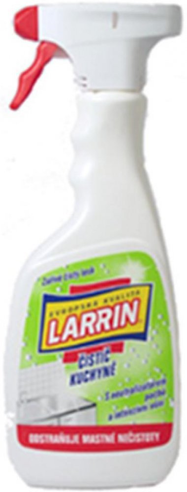 Larrin čistič kuchyně, rozprašovač, 500 ml je praktický a účinný pomocník při úklidu kuchyně. Určený pro všechny omyvatelné povrchy, spolehlivě a rychle odstraňuje mastnotu a ostatní nečistoty, takže vaše pracovní plochy, sporák i digestoř budou znovu čisté bez zbytečné námahy.