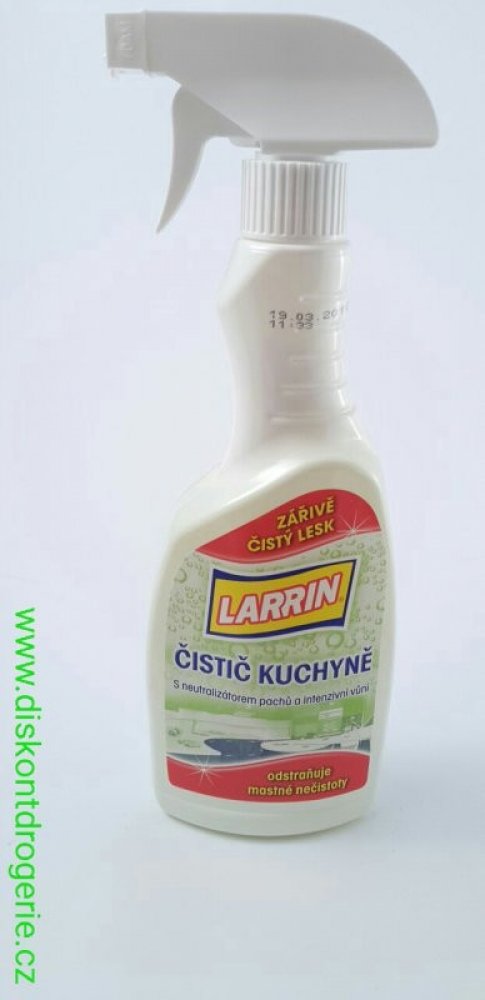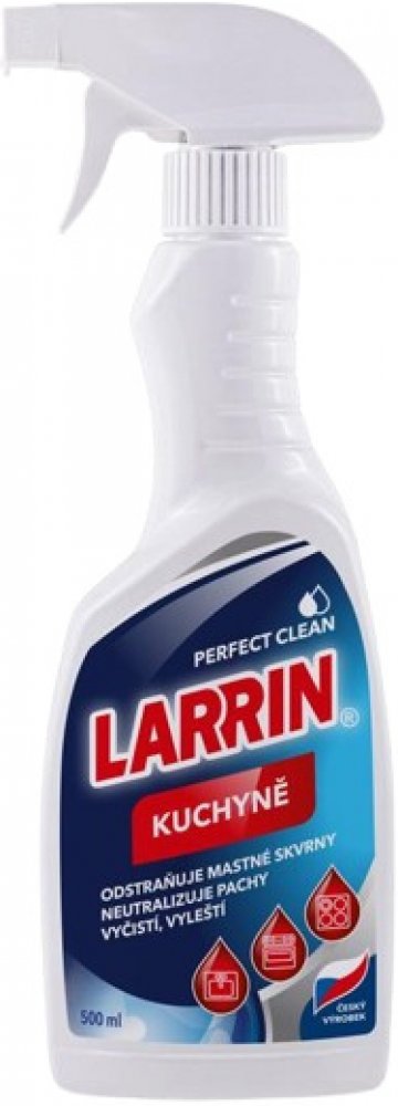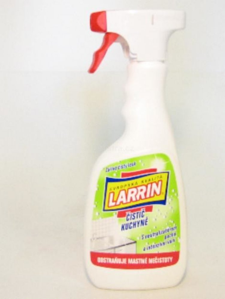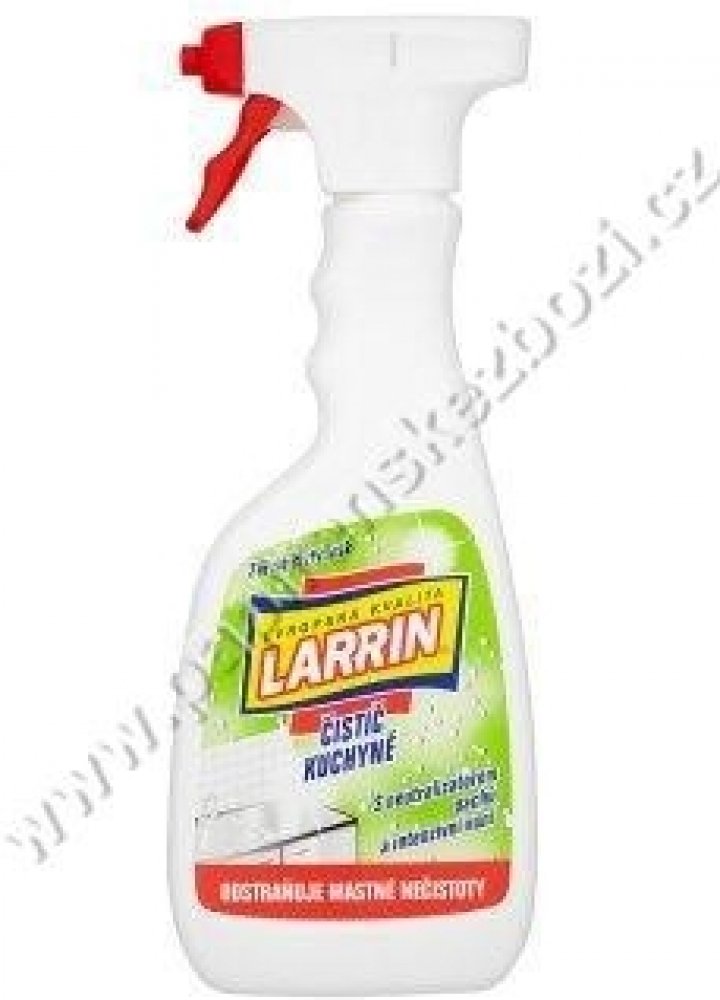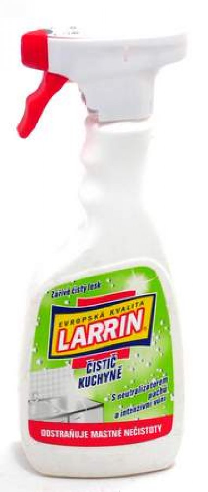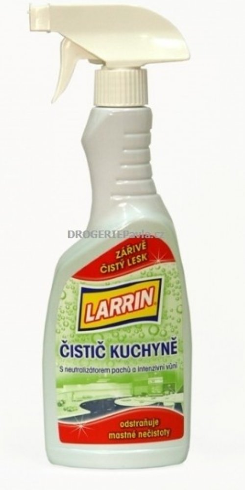 Larrin čistič kuchyně, rozprašovač, 500 ml je praktický a účinný pomocník při úklidu kuchyně. Určený pro všechny omyvatelné povrchy, spolehlivě a rychle odstraňuje mastnotu a ostatní nečistoty, takže vaše pracovní plochy, sporák i digestoř budou znovu čisté bez zbytečné námahy.