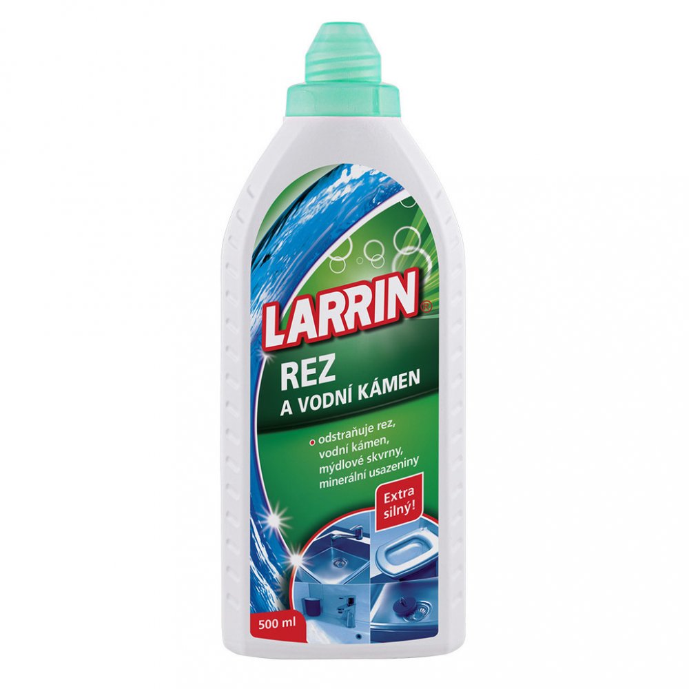Larrin na rez a vodní kámen s rozprašovačem. Odstraňuje rez, vodní kámen, vápenaté a mýdlové usazeniny. Je určen k čistění zařízení koupelen a jiných nenasákavých kyselinovzdorných povrchů vč.příslušenství z nerezu a chrómu.