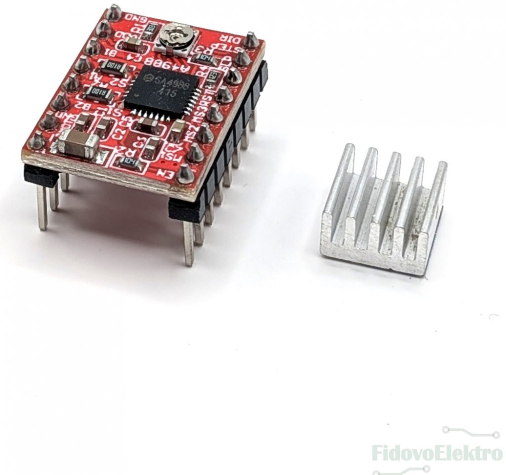 A4988 driver pro krokové motory Parametry: Uzpůsobena pro kartézský souřadný systém Lze rozšířit o různé doplňky Obsahuje 4 driverů krokových motorů Výstupní proud 2A Vstupní napětí 12V (max.36V) Součástí dodávky: 1ks Driver A4988 1ks Chladič Zdroje: A4988 datasheet Poznámka: Tento výrobek není samostatně funkčním celkem a může vyžadovat odbornou montáž. Fotografie výrobků jsou pouze ilustracemi n...