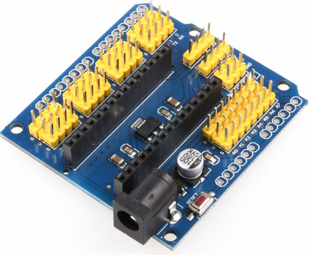 Arduino Nano IO shield Arduino Nano IO shield je speciálně navržen tak, aby usnadnil snadné spojení mezi Arduino Nano a další zařízení. Specifikace: 14 I/O Pin (servo typ s GND, napájení a signál) 8 analogových pinů s napájením a GND 1x I2C rozšíření UART 3,3 V výstupní Součástí dodávky: 1ks Arduino Nano IO shield Poznámka: Tento výrobek není samostatně funkčním celkem a může vyžadovat odbornou montáž. Fotografie výrobků jsou pouze ilustracemi na ukázku a někdy se mohou lišit od skutečného vzhledu předmětu. Avšak toto nemění jejích základní vlastnosti. Arduino Nano není součásti balení.