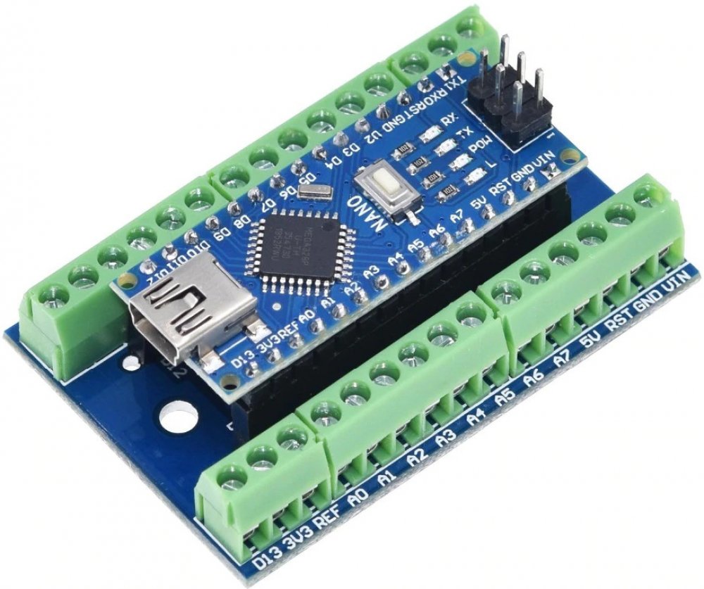 Arduino Nano terminál shield Arduino Nano terminál shield umožňuje snadné spojení mezi Arduino Nano a dalších zařízení pomocí šroubovacích svorkovnic. Součástí dodávky: 1ks Arduino Nano terminál shield Poznámka: Tento výrobek není samostatně funkčním celkem a může vyžadovat odbornou montáž. Fotografie výrobků jsou pouze ilustracemi na ukázku a někdy se mohou lišit od skutečného vzhledu předmětu. ...
