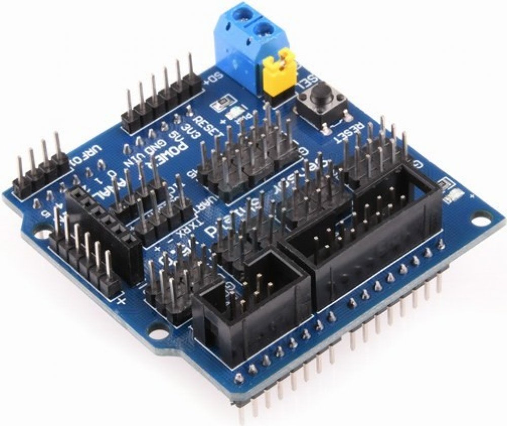 Arduino senzor shield V5.0 Excelentní Senzor Shield pro Arduino UNO a Arduino Mega. Sensor Shield umožňuje připojení různých modulů, jako jsou senzory, serva, relé, tlačítka, potenciometry. Podporuje všechny druhy rozhraní a je plně kompatibilní s Arduino Mega a Arduino UNO. Obsahuje všechny Arduino analogové a digitální piny UNO Specifikace: Analogové porty: 6 vstupů s VCC/GND. Digitální porty: 1...