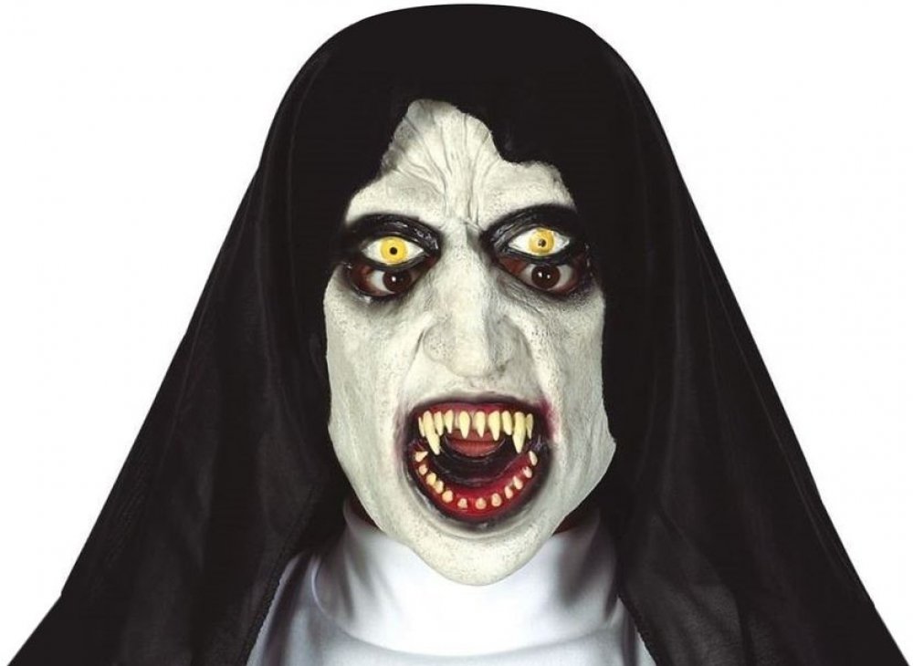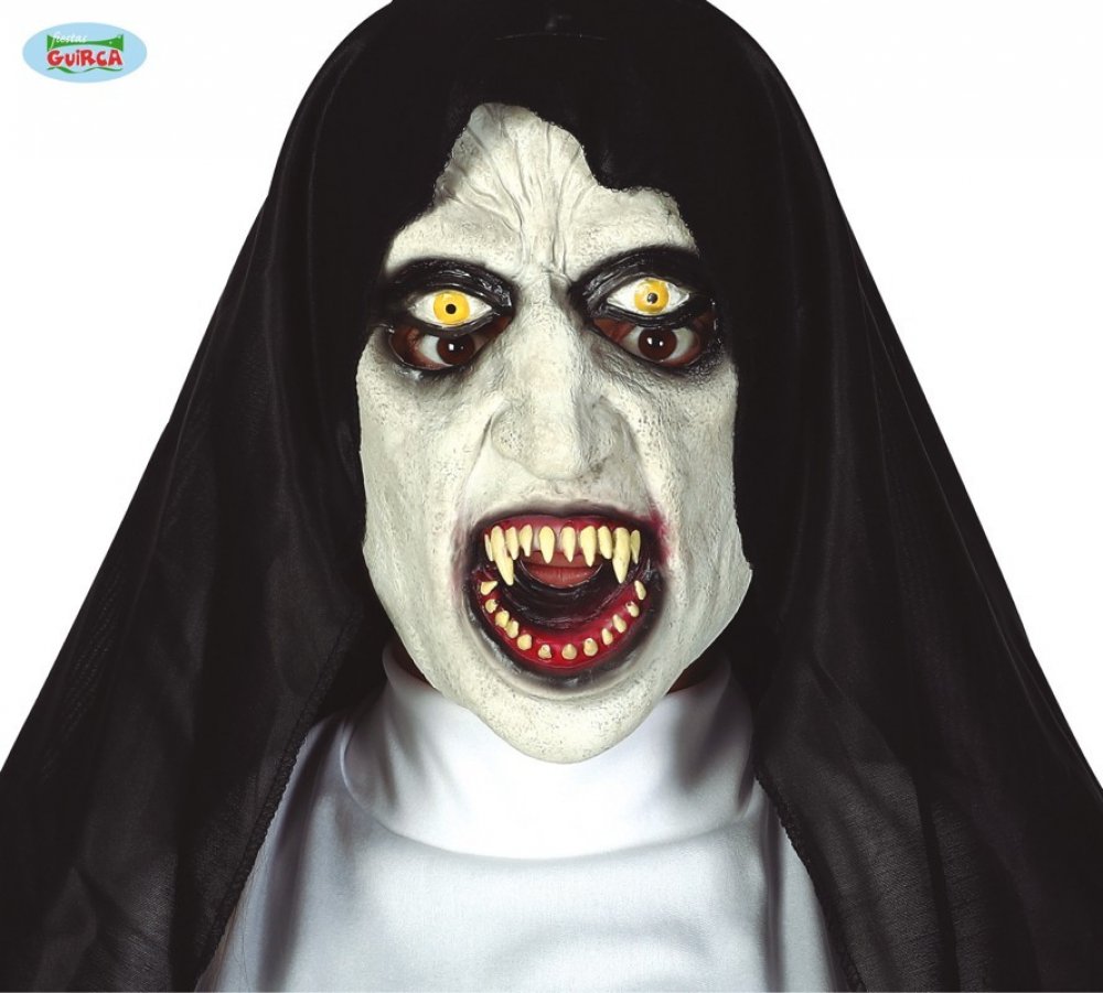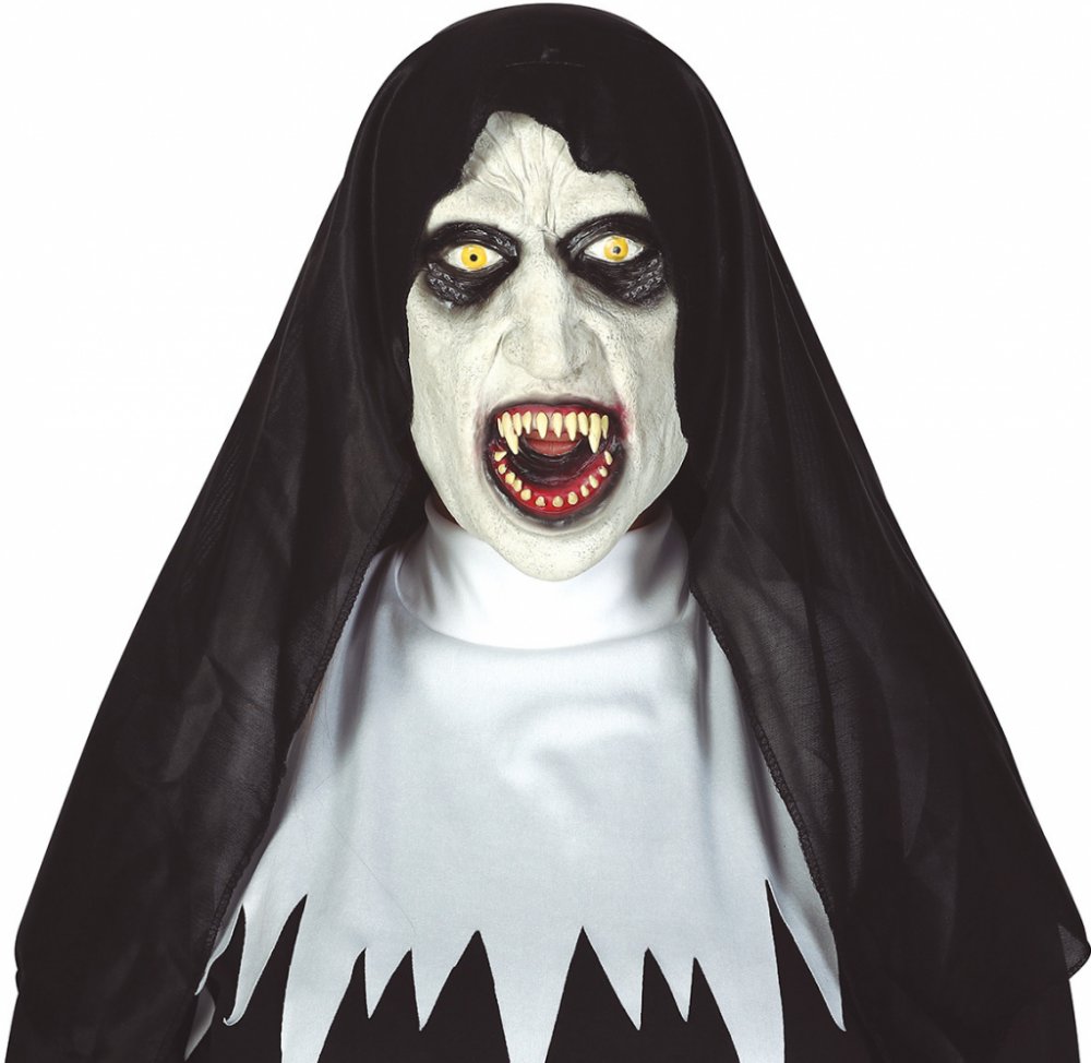 Bavte se s přáteli na karnevalu nebo Halloweenu s děsivou maskou ďábelské jeptišky s k...