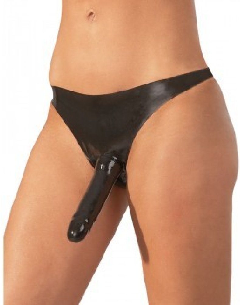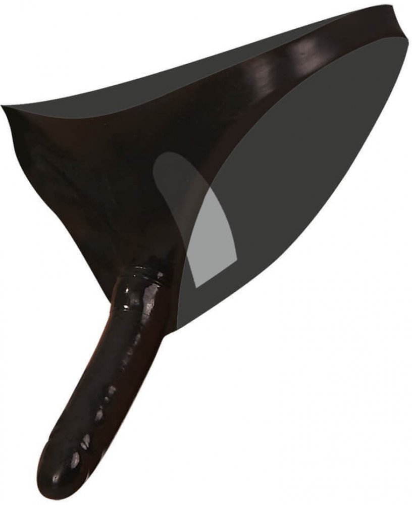 Dámské kalhotky s vnějším dildem jsou vyrobené z kvalitního latexu - díky jeho elasticitě mají univerzální velikost. Dildo je poměrně velké, měkké a má lehce naznačený žalud i žilkování.