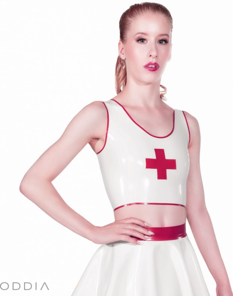 Pojďte si s námi hrát na doktory a seznamte se s klasickým latexovým topem na ramínka určeným pro sestřičky. Navržen pro ty z vás, kteří mají během svých hrátek slabost pro latexové sestřičky, klinik, nebo lékařské role-playe. Design tohoto topu s červenými kontrastními prvky snadno zapadne do vaší malé latexové ordinace. Latex vás obepne jako druhá kůže, zajistí vykreslení vašich vnadů a přidá na vaší atraktivitě. Ať už jde o hry na zdravotníky, nebo vyznavače medical fetiše, tento top vám umožní vyniknout svou tematickou jednoduchostí a nadčasovostí. Přidejte ho do své kolekce a objevte nekonečné možnosti kombinací, které vám tento dokonalý kousek latexového oblečení nabízí.
