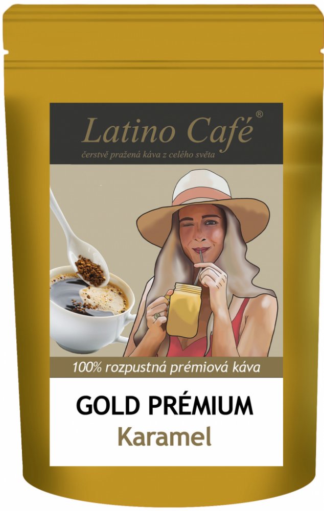 Latino Café Instant Gold Karamelvarianta Gold instant, 1 kg Instant Gold KaramelAčkoliv instantní kávou mnozí odborníci tak trochu opovrhují, ve skutečnosti je pro spoustu lidí praktickou volbou zejména v situacích, kdy nemají příliš mnoho času na přípravu klasické zrnkové kávy, nebo zkrátka a dobře nechtějí kávou trávit tolik času. Měli byste však mít na paměti, že i v rámci instantní kávy existují obrovské rozdíly a rozhodně není jedno, kterou vyberete. V čem je Gold Premium jiná?Existují dva základní výrobní postupy, jakými se instantní káva získává. První z nich využívá horkého vzduchu, který vysuší silný kávový extrakt a vzniknou tak jemné granulky instantní kávy. Tato metoda je jednoduchá a v praxi velmi rozšířená, ale bohužel vysoké teploty mohou zničit některé z přirozených vlastností kávy. Proto se pro výrobu kávy Gold Premium využívá tzv. sušení mrazem, kdy teploty atakují bezmála 50 stupňů pod nulou. Voda začne při takovéto teplotě sublimovat a výsledkem jsou pěkně vypadající...