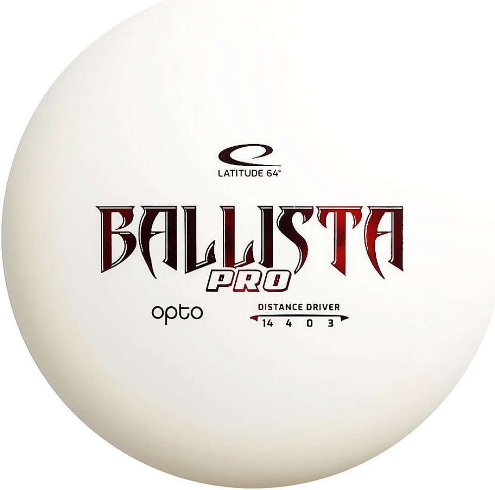Ballista Pro je velkým bráchou původní Ballisty. Pro potřeby pokročilejších hráčů jí v Latitude64 přidali stabilitu, čímž z ní idělali skvělé řešení ve chvílích kdy hledáte opravdu dlouhý driver a zároveň je vlevo i vpravo málo prostoru. Se skvělou kombinací rychlosti, stability a klouzavosti je tím správným diskem pro všechny možné dlouhé hody. Průměr: 21.2cm, Turn: 0, Glide: 4, Fade: 3, Rychlost: 14.0, Výška rimu: 1.10cm, Šířka rimu: 2.40cm, Poslušnost: 2.0, Začátečník: 2.0, Směr letu: doleva, Typ plastu: Opto, Typ disku: Ballista Pro, Výrobce: Latitude 64°