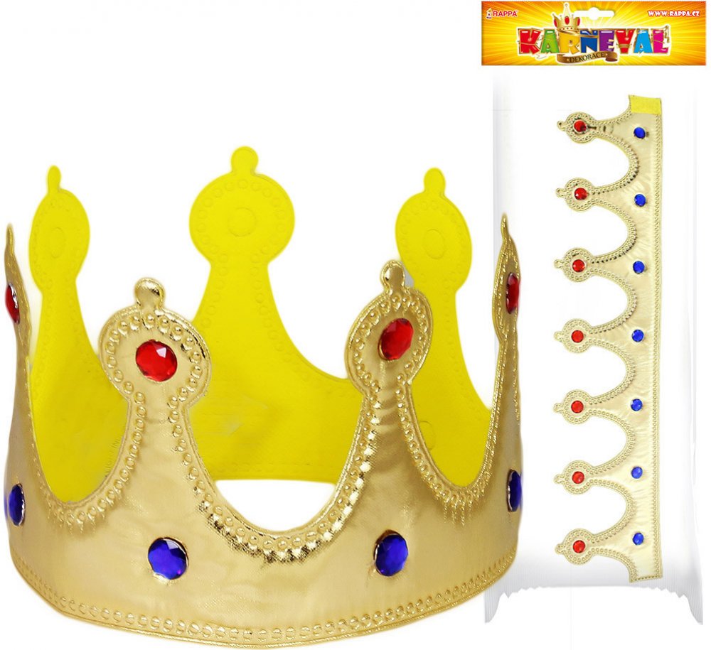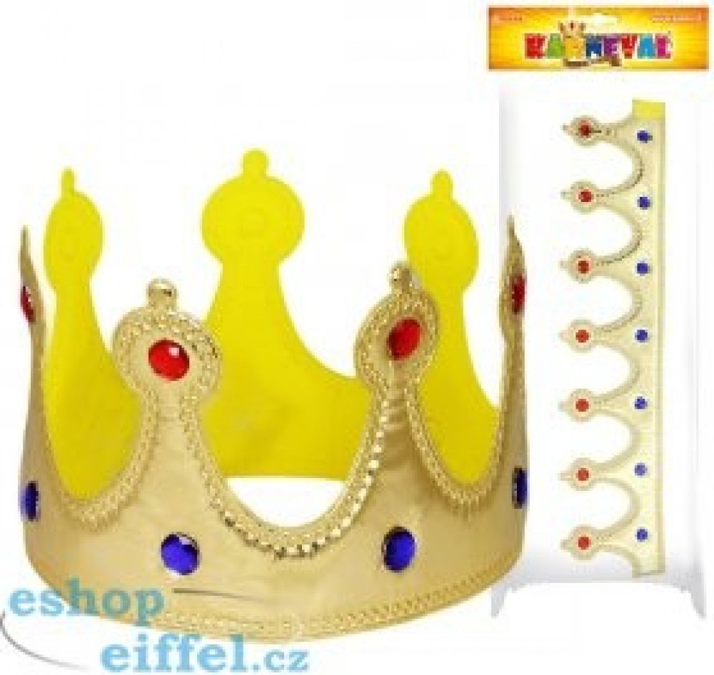 Karnevalová královská koruna, látková, zdobená kamínky. Na suchý zip. Baleno v sáčku.