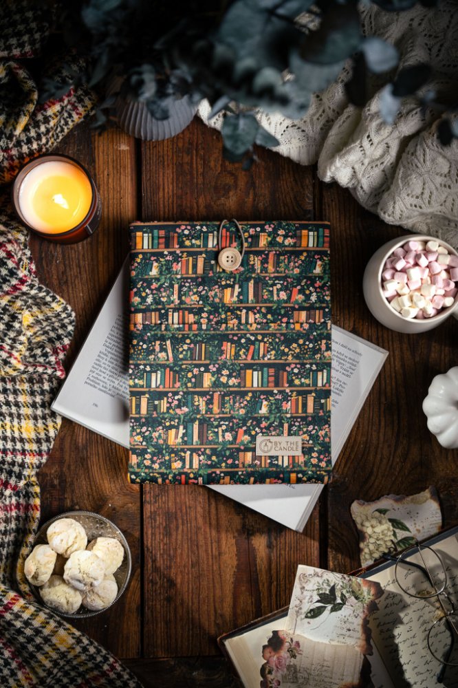 Látky necháváme potisknout designy, o které je mezi knihomoly největší zájem. K potisku ladí barva vnitřku i detaily jako barva obšití a gumičky na zavírání přes dřevěný knoflík. Luxusní booksleeve By The Candle se stane oblíbeným doplňkem vaší výbavy na cesty i na nočním stolku.