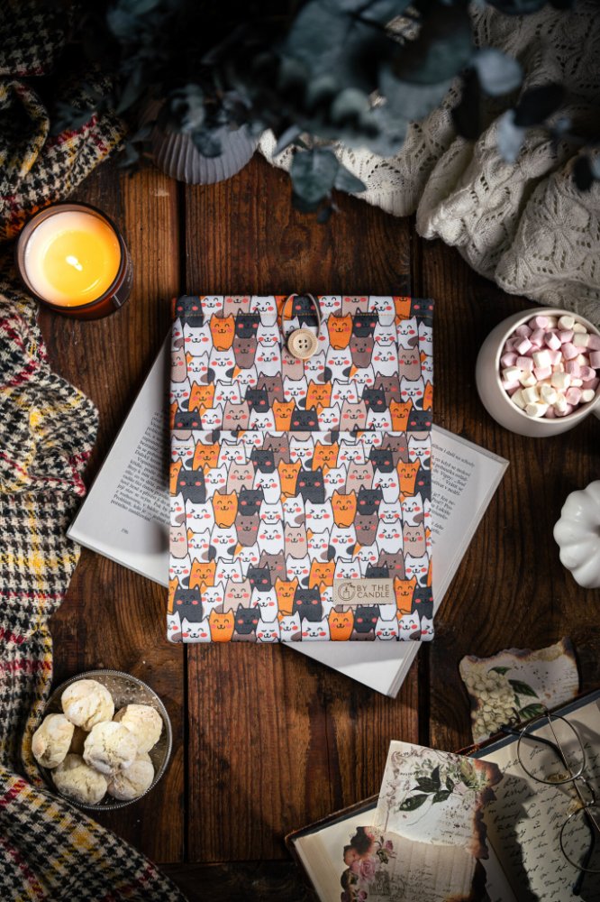 Látky necháváme potisknout designy, o které je mezi knihomoly největší zájem. K potisku ladí barva vnitřku i detaily jako barva obšití a gumičky na zavírání přes dřevěný knoflík. Luxusní booksleeve By The Candle se stane oblíbeným doplňkem vaší výbavy na cesty i na nočním stolku.