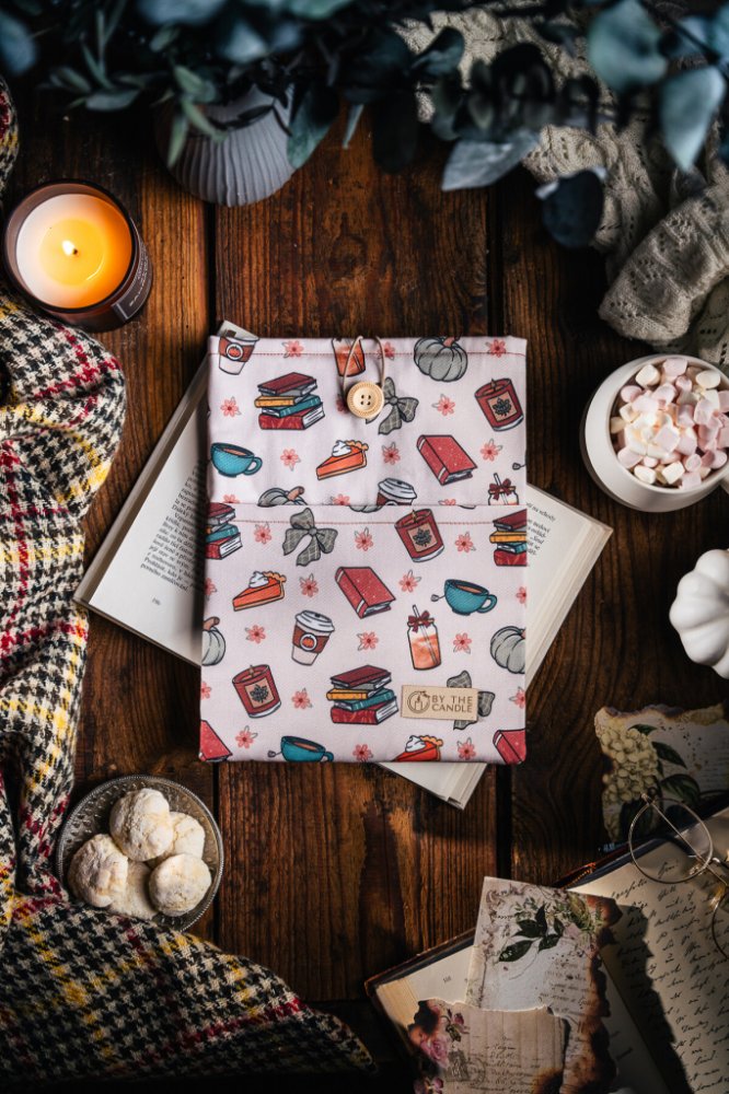 Látky necháváme potisknout designy, o které je mezi knihomoly největší zájem. K potisku ladí barva vnitřku i detaily jako barva obšití a gumičky na zavírání přes dřevěný knoflík. Luxusní booksleeve By The Candle se stane oblíbeným doplňkem vaší výbavy na cesty i na nočním stolku.