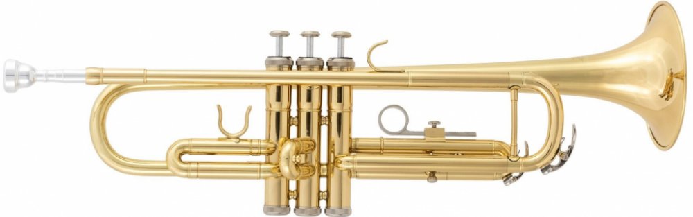 Bb trumpeta, tělo z mosazi, 11,65 mm vrtání, v ceně kufr, řemínek, čisticí hadřík, rukavice, náustek a olej