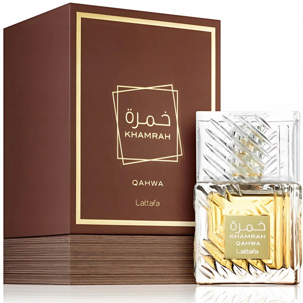 Lattafa 100 ml unisex parfémované vody orientální pro večerní akce s dlouhou výdrží (8h+) mystické a orientální Khamrah Qahwa 2023 ze Spojených arabských emirátů mainstreamové zázvor, skořice, kardamom pralinky, kandované ovoce, bílé květiny káva, tonkové boby, pižmo, benzoin, vanilka se silnou projekcí podzimní výrazné s kávou, s tonkovými boby, s vanilkou, s pižmem Lattafa Perfumes klasické TSA kompatibilní (≤100ml) rozprašovač obsahuje známé alergeny Citral, Coumarin, Eugenol, Linalool, Limonene