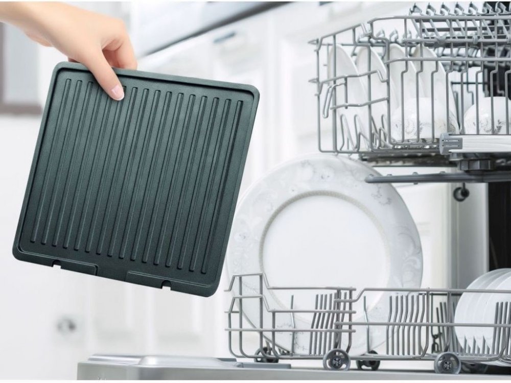Obě grilovací plotýnky jsou odnímatelné a vhodné do myčky nádobí.