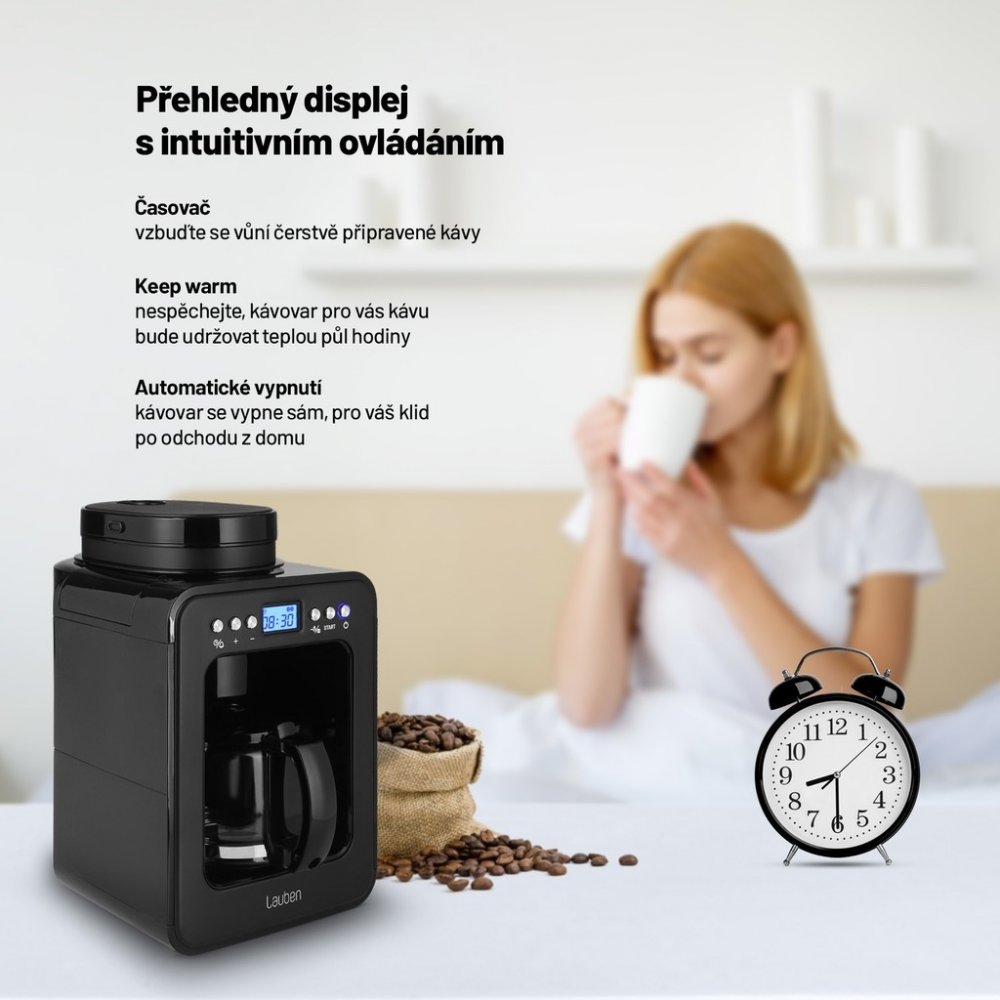 Lauben Grind&Drip Coffee Maker 600BB disponuje vestavěným mlýnkem, který kávová zrna namele na potřebnou hrubost, a to ve 2 úrovních času mletí. Následně z takto namletých zrn uvaří překapávanou kávu. Avšak k přípravě lze využít i klasické mleté kávy, součástí balení je také praktická odměrka. Nezvonil budík nebo se práce protáhla? Často nastanou okolnosti, za nichž vám běžně káva vystydne, ale to už se nestane. Funkce Keep Warm udržuje kávu teplou, takže si na ní vždy pochutnáte.