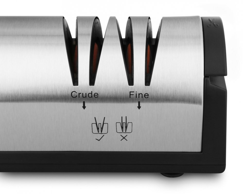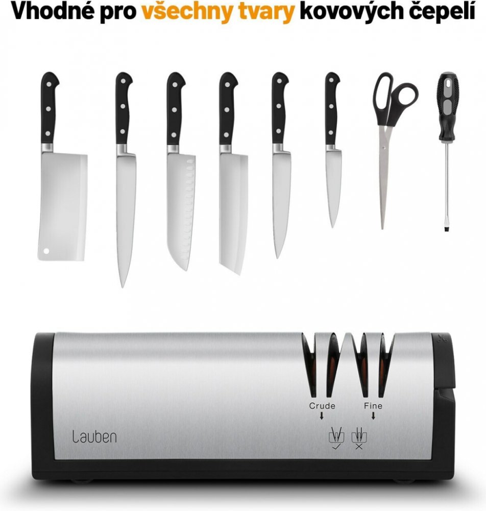 Díky Lauben Knife Sharpener 4700SB nabrousíte většinu nožů a sekáčků v pohodlí domova. Přidali jsme i speciální slot na broušení nůžek, i s těmi se tedy bruska Lauben poradí. Bruska umožňuje dva stupně broušení – hrubé a hladké začištění. Díky vodicím drážkám pro udržení správného sklonu a optimálnímu brusnému úhlu 15° zvládnete dokonale nabrousit každé ostří jako profesionál. Stačí brusku zapojit, spustit a vložit ostří, které chcete nabrousit.