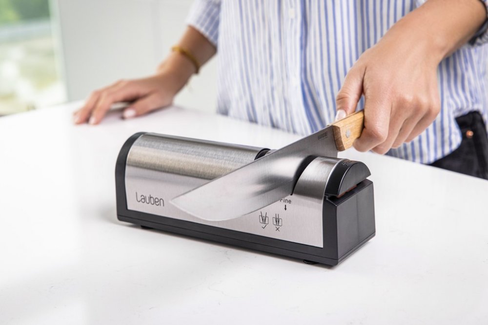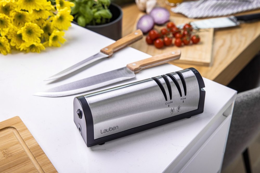 Dobře nabroušený nůž je základem kuchyně. Dnes už ale nemusíte hledat brusiče nožů, díky brusce na nože Lauben Knife Sharpener 4700SB jej budete mít stále po ruce. Bruska zvládne hrubé i hladké začištění a hodí se pro většinu nožů, sekáčků či nůžek. Kvalitní nabroušení zajišťuje optimální brusný úhel 15° a vodicí drážky pro udržení správného sklonu. Brusný kámen je v případě potřeby možné vyměnit, životnost je zhruba pět let. Bruska má ergonomický tvar, vyznačuje se tichým provozem a je vyrobena z nerezu, takže ji jen tak něco neublíží. Bezpečnost při provozu zajišťují protiskluzové nožičky.
