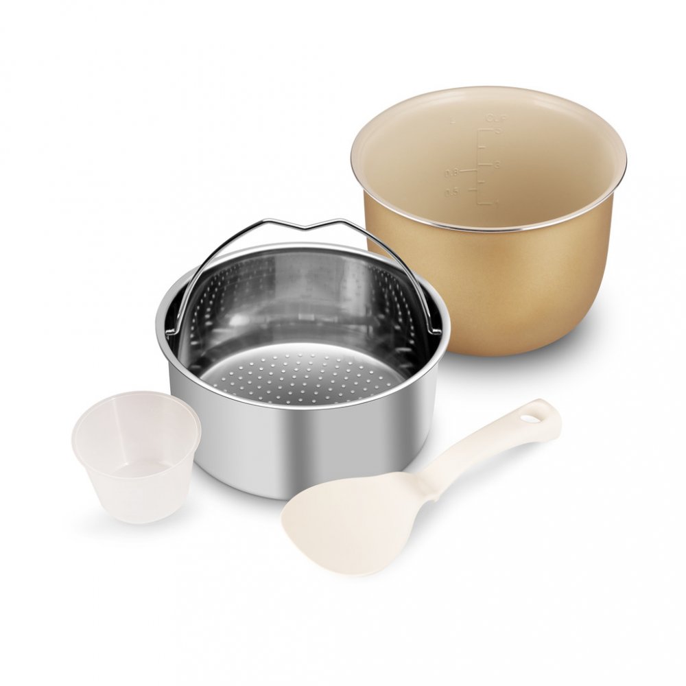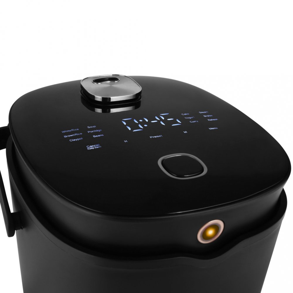 Ovládání multifunkčního rýžovaru zvládne úplně každý pomocí přehledného dotykového displeje, kde stiskem tlačítka aktivujete zvolenou funkci nebo si manuálně nastavíte hodnoty dle potřeby. Manipulaci s rýžovarem usnadňuje praktické madlo. Ve 2l hrnci s nepřilnavým povrchem pohodlně připravíte jídlo pro celou rodinu či sešlost přátel. Stačí jej pak vyjmout a vložit do myčky, žádné složité drhnutí. Součástí balení je rovněž praktická odměrka a lžíce na rýži.