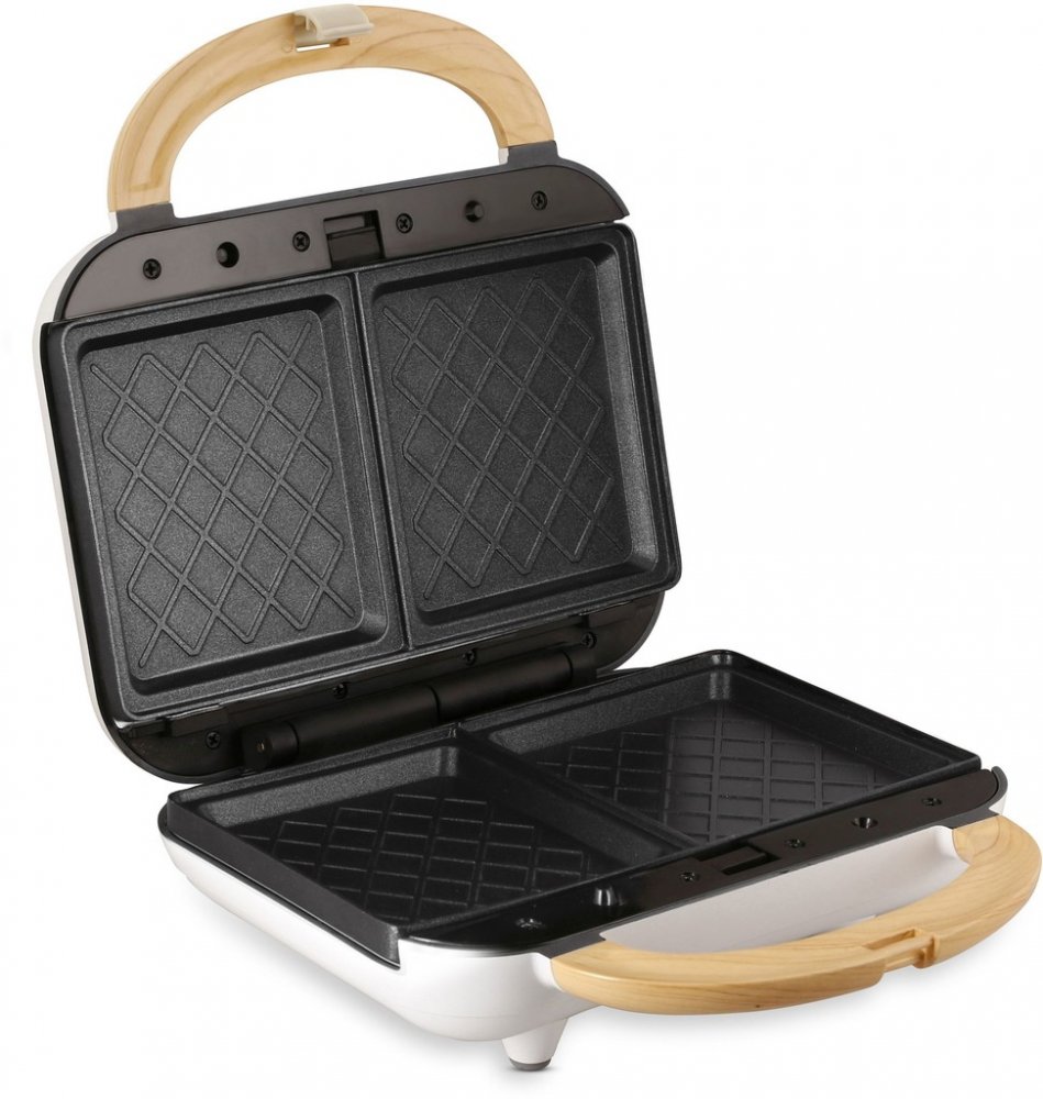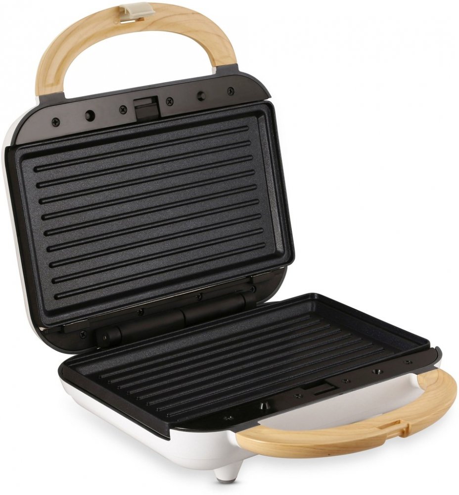 Lauben Sandwich Maker vás potěší i svým minimalistickým designem. Off white provedení s dřevěným dekorem se hodí téměř do každé kuchyně. Design sendvičovače je zároveň funkční. Držadlo je vyrobeno technologií Cool Touch, takže se o něj nikdy nespálíte a protiskluzové nožky zase zajistí, že během přípravy zůstane přístroj na svém místě.