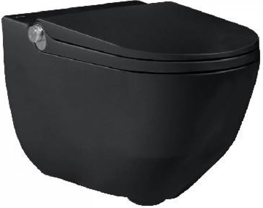 Závěsné WC s elektronickým bidetovým sedátkem materiál: sanitární keramika materiál sedátka: duroplast provedení: matná černá s technologií Rimless, SoftClose s dálkovým ovládáním s dotykovou obrazovkou hluboké splachování anální hygiena, perineální a jemnější sprška možnost nastavení tlaku, teploty a polohy trysky oscilující a pulzující režim integrovaná samočistící tryska před a po užití integrovaný filtr zápachu orientační světlo programovatelné uživatelské profily skryté připojení vody a elektřiny objem splachování min. 4,5/3 l dodáváno včetně odnímatelného sedátka s poklopem