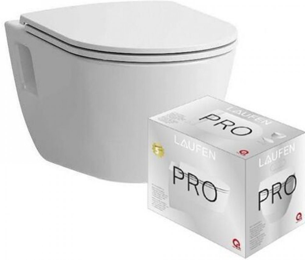 Závěsný klozet se sedátkem, rozměry 53x36x34,5 cm, materiál sanitární keramika, povrchová úprava bílá, splachování hluboké, napojení na odpad vodorovné, Rimless - bez oplachovacího kruhu. Včetně sedátka Laufen Pro Slim se zpomalovací mechanikou sklápění SoftClose.