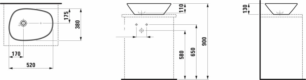 LAUFEN PALOMBA Umyvadlová mísa 52x38 cm, bez otvoru, bílá, 8.1680.2.000.112.1