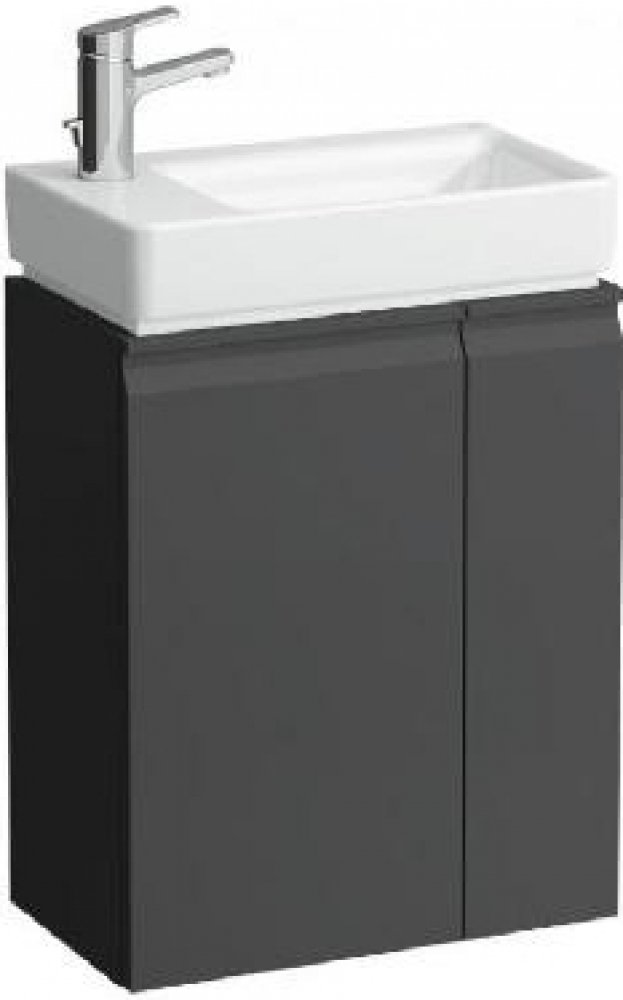 Spodní skříňka pod umyvadlo barva: matná grafitová rozměry: 470 x 275 x 605 mm (DxŠxV) materiál: MDF - dřevovláknitá deska střední hustoty přední strana povrchu: fólie 1x dvířka s mechanismem SoftClosing otevírání vlevo 1x vnitřní skleněná police 1x boční police vpravo instalace zavěšením na stěnu včetně montážní sady doporučujeme použít prostorově úsporný sifon, není součástí dodávky Ilustrativní...