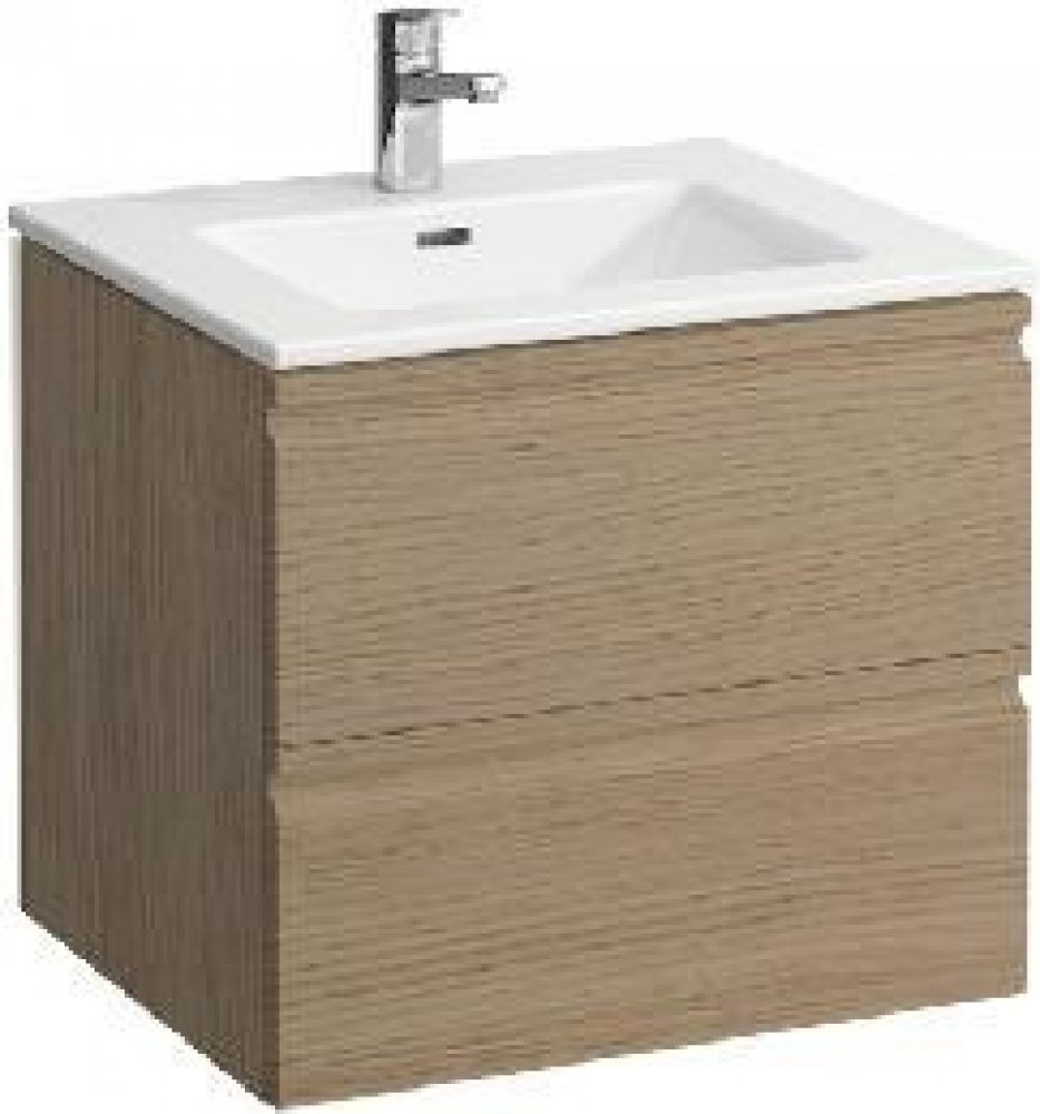 Umyvadlo montovatelné na zeď, se skříňkou pod umyvadlo, 2 zásuvky spodní okraj umyvadla glazovaný umyvadlo s 1 otvorem pro baterii barva umyvadla: bílá rozměry: šířka 600 mm, hloubka 500 mm systém otevírání: 2 zásuvky barevné provedení skříňky: světlý dub ilustrativní foto
