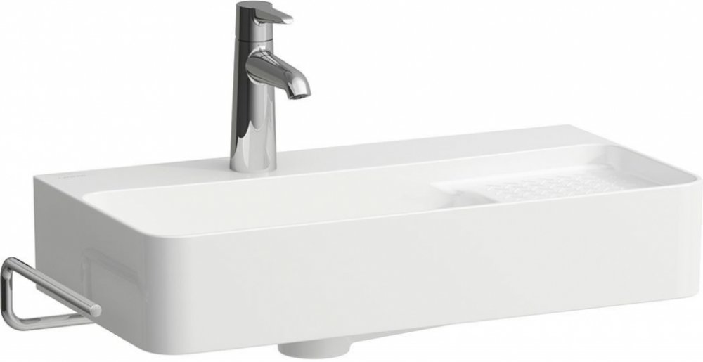 - tvar: obdélníkový, asymetrický - materiál: SaphirKeramik - instalace: na stěnu - přepad: ano - umístění otvoru pro baterii: 1 otvor uprostřed - umístění umyvadla: levá strana - záruka: 5 let na keramiku - barva: bílá - integrovaná polička na pravé straně Cena je uvedena pouze za umyvadlo.