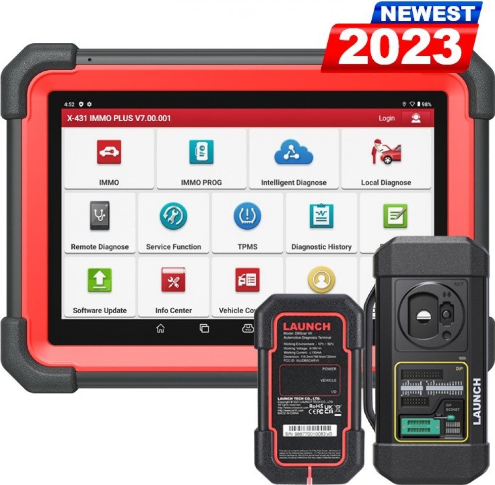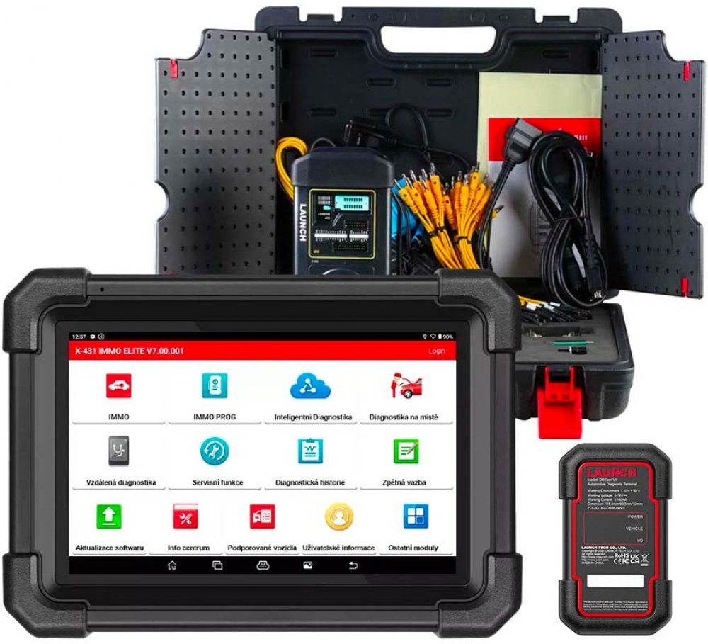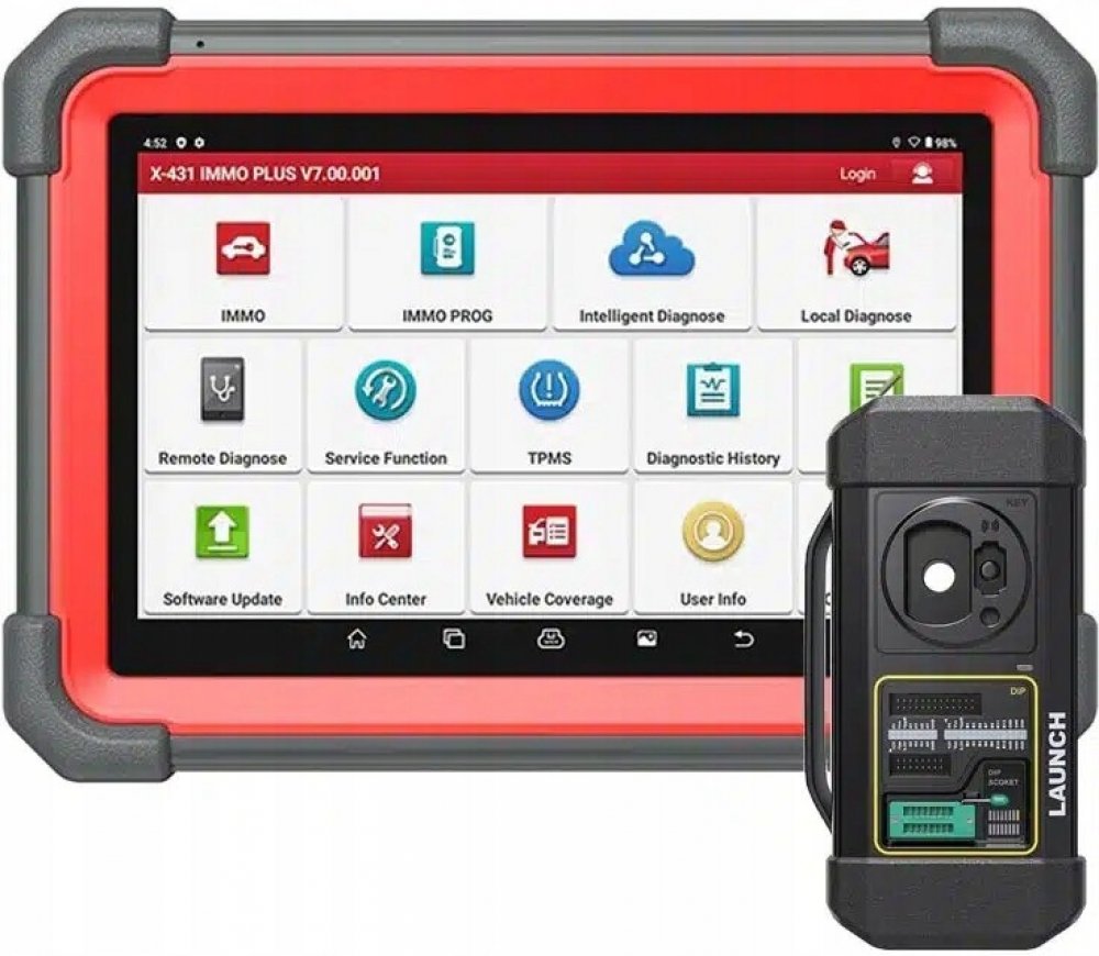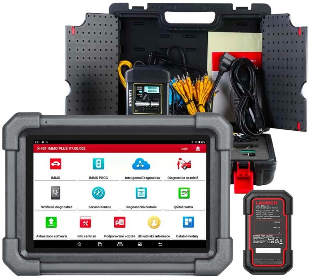 Launch X431 IMMO Plus je nejnovější specializovaný 8" IMMO tablet s vysokým výkonem a kompletní výbavou pro programování klíčů, práci s imobilizérem, klonování řídicích jednotek motoru a převodovky i plnou diagnostiku všech systémů. V sadě je X-PROG 3 – pokročilý modul pro čtení/zápis čipů, ECU a klíčů.