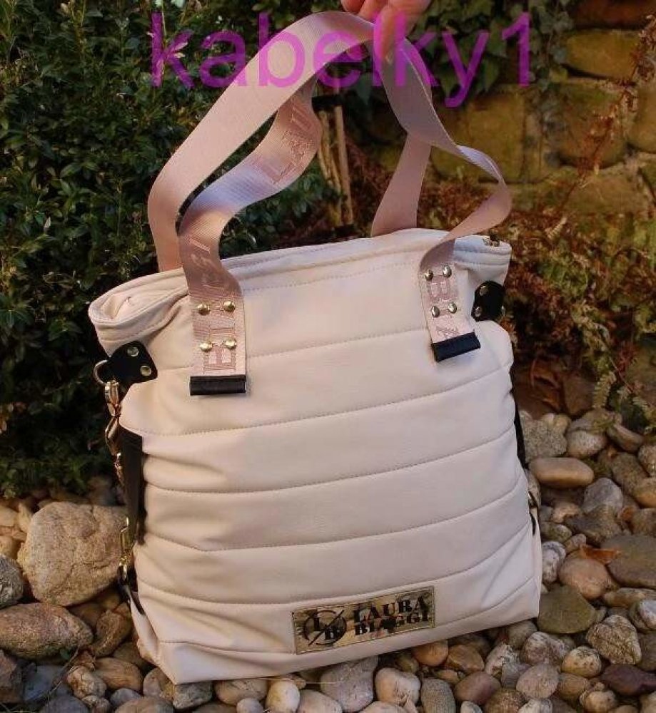 Stylová smetanová prošívaná velká kabelka, vpředu zrcadlové logo LAURA BIAGGI.