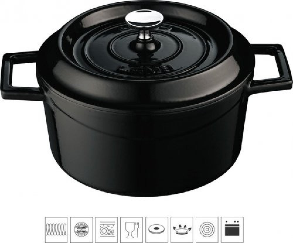 Těžká poklička dokonale zapadne a udržuje teplo a vlhkost v hrnci. Oddělitelný úchyt víka je vyroben z nerezové oceli. Díky ergonomickým rukojetím hrnce s ním lze snadno manipu...