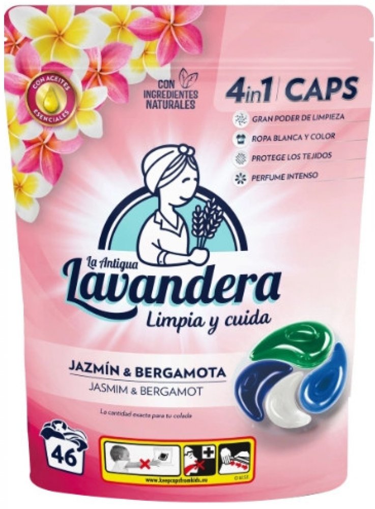 Kapsle Lavandera 4 v 1 nabízejí hloubkové čištění, ochranu tkanin a intenzivní svěžest bílých oděvů a zanechávají váš šatník provoněný jasmínem a bergamotem. Balení obsahuje 46 ks kapslí.