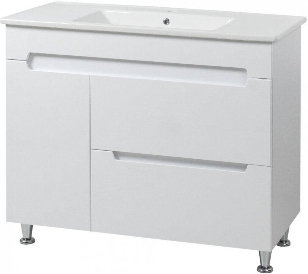 Praktická a designová skříňka s keramickým umyvadlem a bohatým úložným prostorem nesmí chybět v žádné dobře promyšlené koupelně! Koš na prádlo (ručníky) jistě ocení každý, kdo má rád v koupelně pořádek. Prostorné vysoce kvalitní keramické umyvadlo zajistí snadné užívání po mnoho let. Celkový design skříňky s povrchovou úpravou vysokého bílého lesku působí velmi moderně a elegantně, hodí se do jakékoliv koupelny.