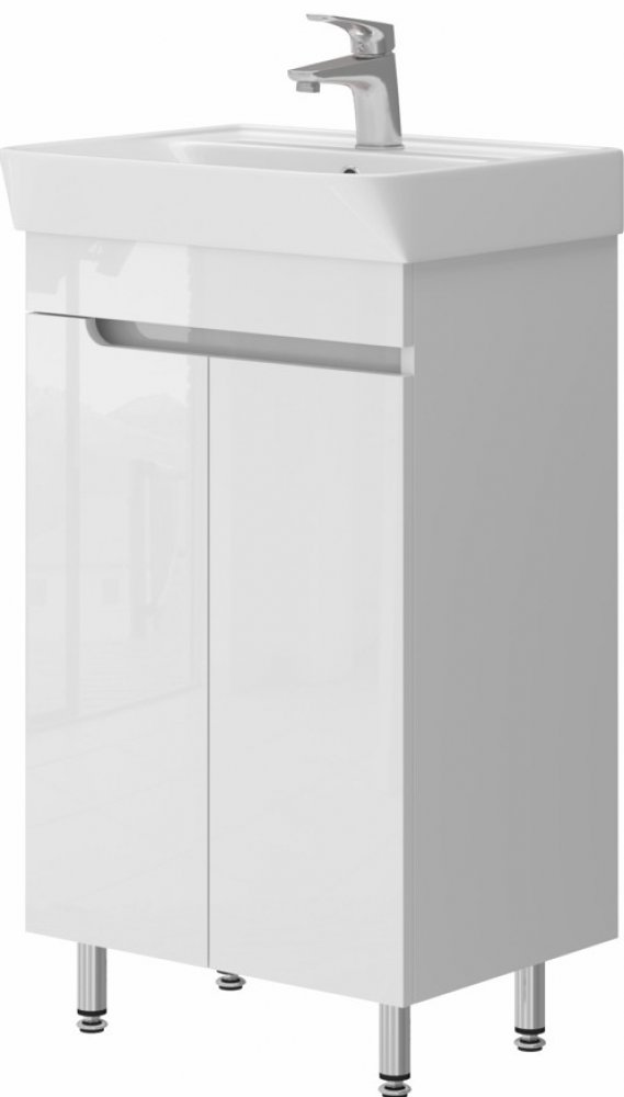 Designová skříňka včetně umyvadla v provedení na nožičkách se hodí do jakékoliv stylové koupelny. Skříňka obsahuje dvoje dvířka. Skříňka neobsahuje úchyty, jejich funkci plní speciální frézování na povrchu skříňky. Skříňka je určena k instalaci na podlahu, má však také přídavné uchycení na stěnu. Umyvadlo, které je součástí skříňky, je vyrobeno z vysoce kvalitní keramiky.