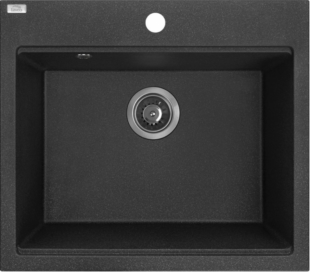 Granitový dřez Tau s 1 mísou- dřez s 1 mísou bez odkapávače- rozměry 570 x 500 x 215 mm- pro skříňku min. 60 cm- hluboká mísa- rozměry komory 510 x 365 x 200 mm- kompletní s úsporným sifonem a zacvakávací zátkou- odtok 3,5 palce- připojení k myčce nádobí- předvrtaný otvor pro baterii- odolnost proti poškrábání- odolný proti potřísnění- odolný vůči teplotám do 250 °C- montáž pod omítku- záruka 10 let na dřez, 2 roky na ostatní prvky- servis v okolí- technologie výroby granitových dřezů je založena na patentované směsi surovin Poligran, která kombinuje 80 % minerálů a 20 % polyesterových pryskyřic.- barva: černá