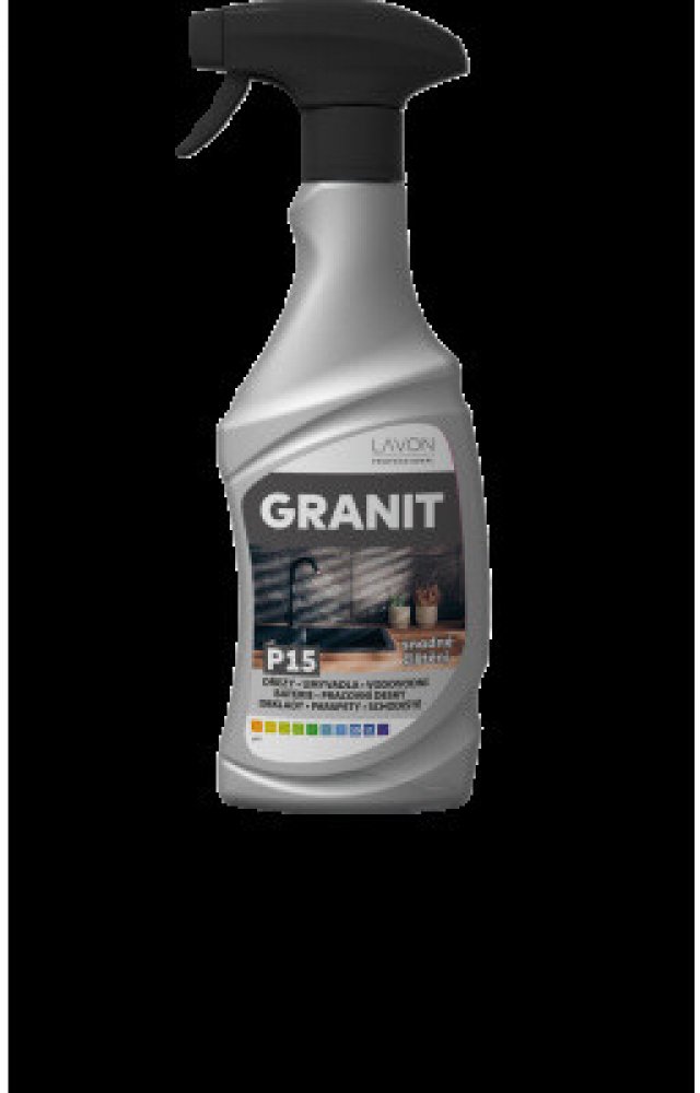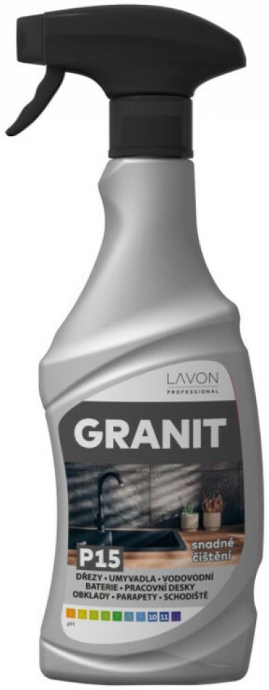 Lavon Granit je speciální čistič určený na všechny druhy granitových povrchů (granitové kompozity). Snadno odstraňuje nečistoty bez poškození povrchu. Vhodné na dřezy, prkénka, kuchyňské a jiné pracovní desky, obklady, umyvadla, vodovodní baterie, dlažby, schodiště, parapety.