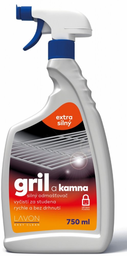 Nastříkejte prostředek Lavon gril a kamna, chvíli počkejte a poté setřete nebo opláchněte (zvlášť důkladně opláchněte nádobí a plochy pro přímý styk s potravinami). Nevhodný na mořené, lakované a voskované povrchy, hliník a jiné citlivé povrchy k silně alkalickým prostředkům.