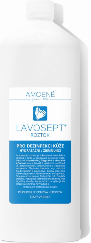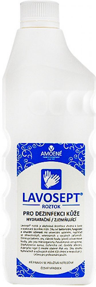 Alkoholový dezinfekční přípravek pro hygienickou dezinfekci kůže. Lavosept je alkoholový dezinfekční přípravek ve formě roztoku, který obsahuje i zjemňující a hydratační přísady, které zabraňují vysoušení a podráždění pokožky. 1000 ml náhradní náplň.